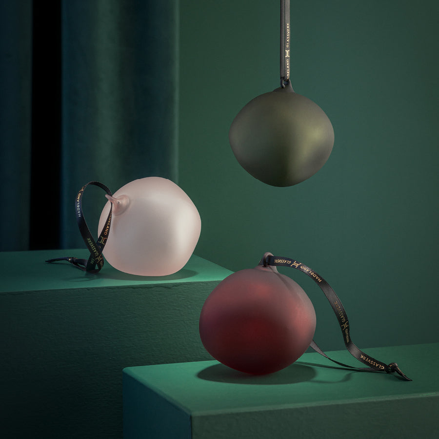 Bobleklang Organisk 3 pk Stor er en kolleksjon med tre store julekuler fra Hadeland Glassverk, designet med unike organiske former som gir et moderne preg til juledekorasjonen. Kulene har en frostet overflate i delikate fargetoner av rosa, grønn og rød, som tilfører en sofistikert og rolig stemning til hjemmet. Den myke, organiske formen gir et elegant uttrykk som skiller seg fra tradisjonelle julekuler. Kulene kommer vakkert innpakket i en gaveeske, noe som gjør dem til den perfekte gaven til jul.