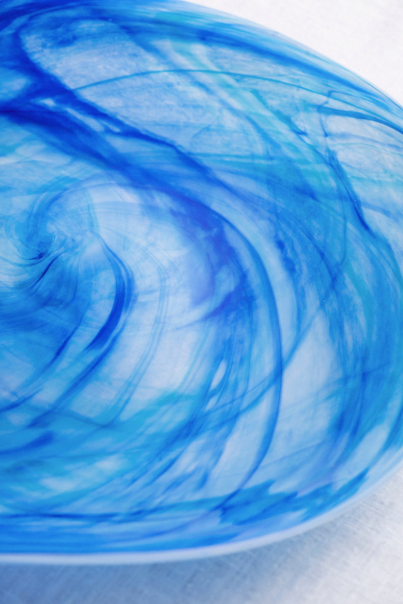 Blue Ocean is a series of beautiful art glass products designed by Maud Gjeruldsen Bugge, inspired by the play of colors and movement of the sea. The design captures both the tranquility and the power of nature’s elements. Like water, life is full of contrasts—from the calm to the wild—and every movement shapes us. These differences make each product unique, and as Maud says: "Water’s ability to change reminds us that we too are constantly evolving." It’s the small details and variations that give Blue Ocean its character and beauty.