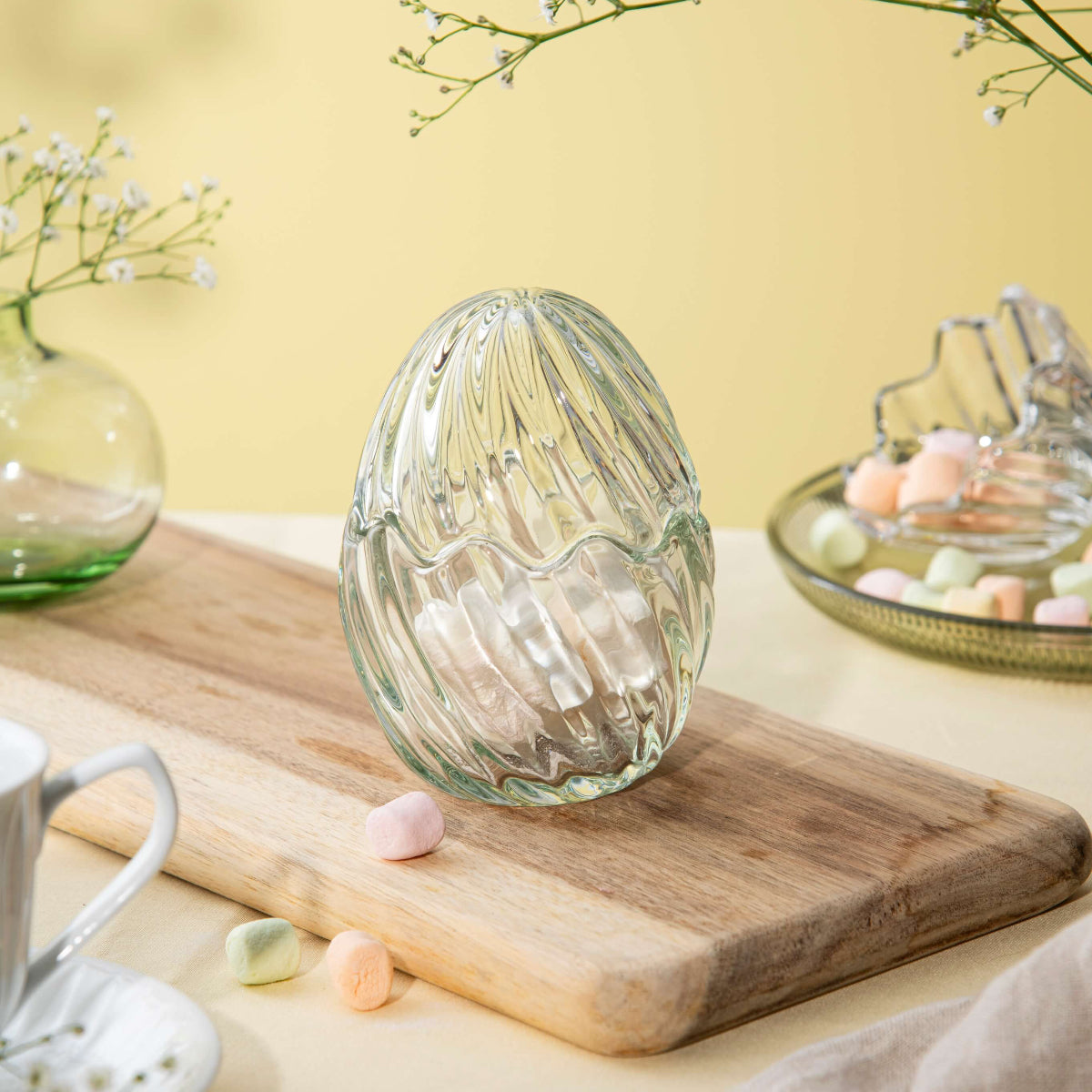 A fresh green version of the classic glass egg with lid. The pronounced optic pattern adds depth and texture, making it a decorative focal point for Easter décor. Ideal for both storage and display.