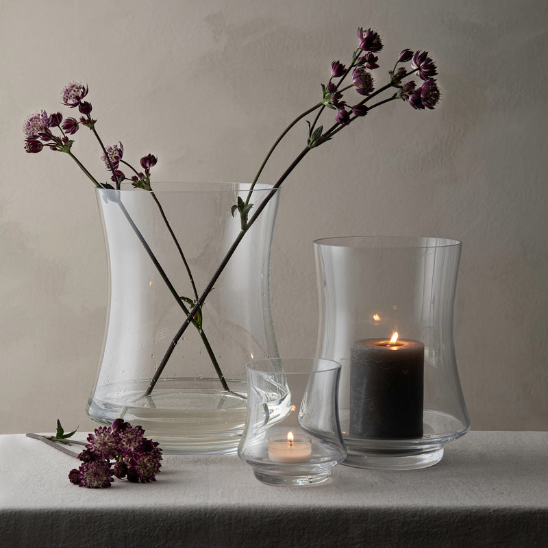 The name Hanabi means “firework” in Japanese, combining Hana (flower) and Bi (fire). This medium-sized hurricane lamp is perfect as both candleholder and vase, alone or paired with other sizes in the series.