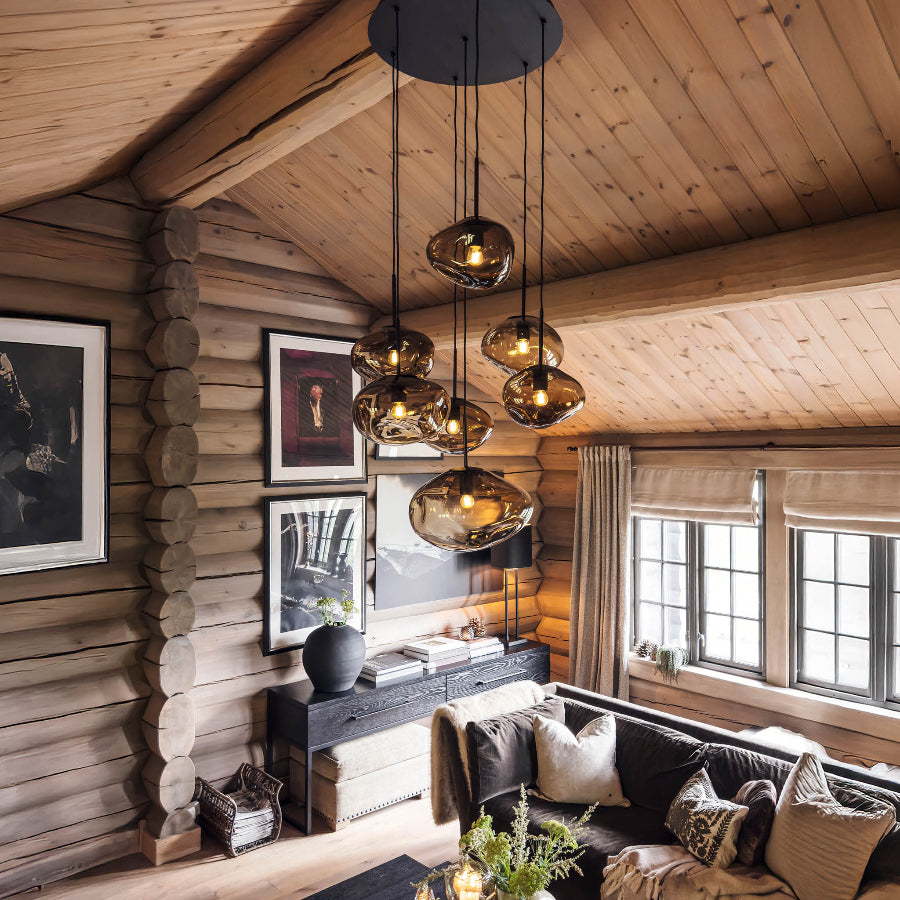 Each lamp is inspired by forms found in nature – from ice crystals to eroded cliffs and smooth rock formations. The hand-blown glass globes have an organic character that makes each lamp completely unique.