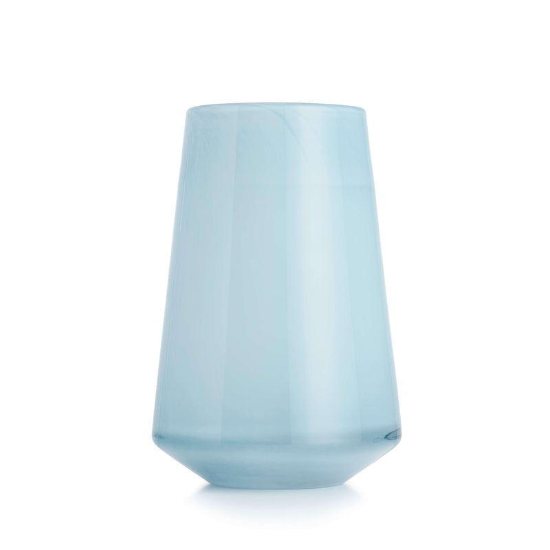 The Dugg vase 20 cm in light blue brings a fresh and airy feel inspired by Nordic skies and sea. Mouth-blown in solid-coloured glass, it offers subtle depth and a soft surface play.
