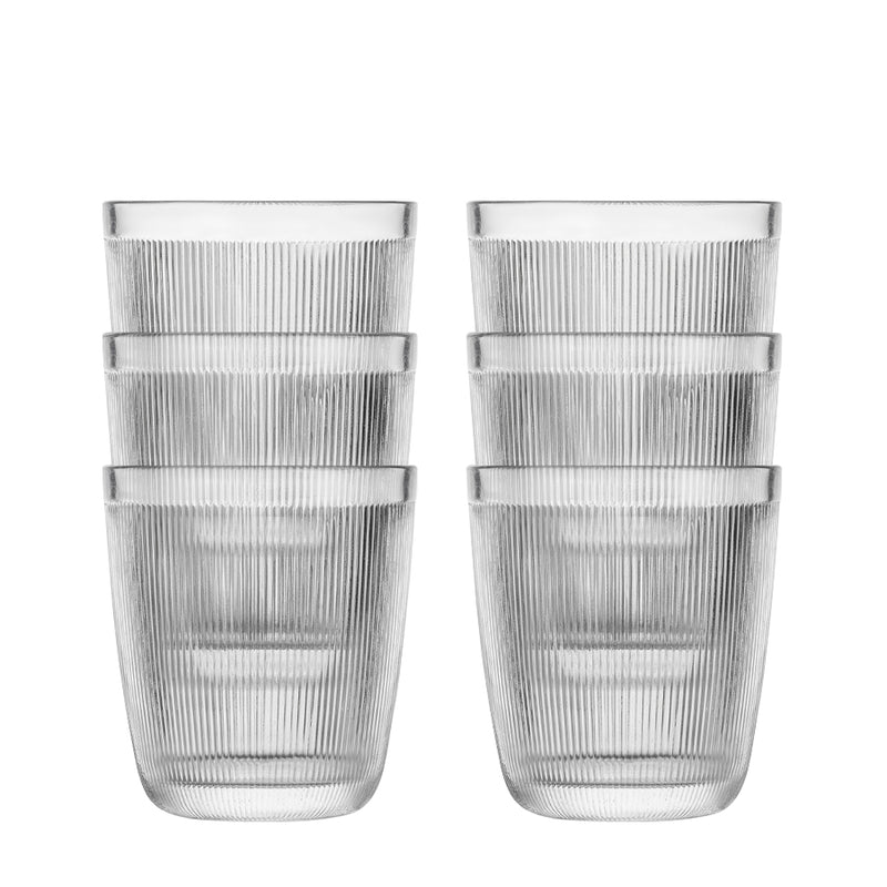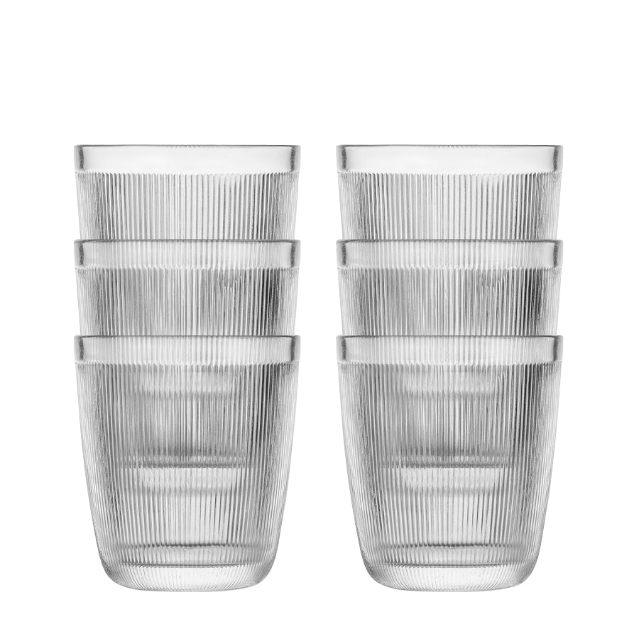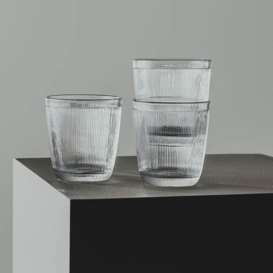 Sleek, minimalist water glasses with a decorative ribbed pattern—perfect for both everyday use and special occasions. The glasses are easy to stack, saving space in your kitchen cabinets. Available in two sizes: 20 cl and 30 cl.