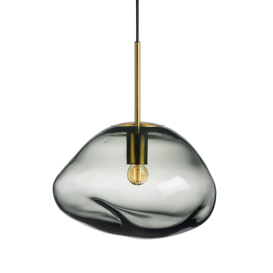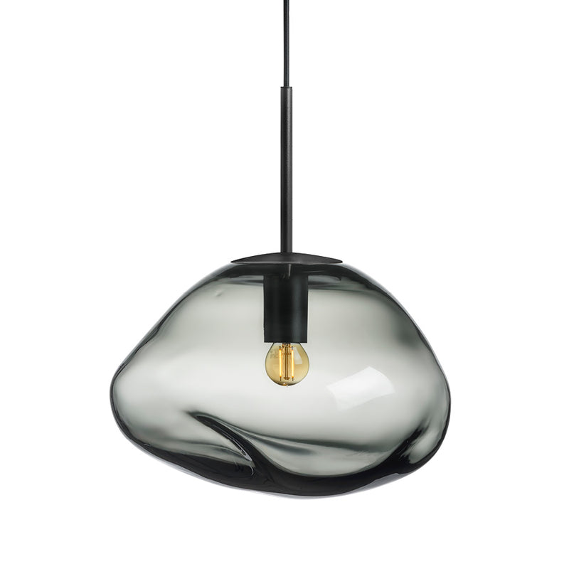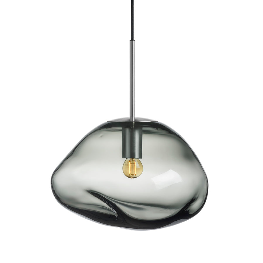 Enjoy a sophisticated and elegant atmosphere with a smoke gray glass pendant lamp. Evokes images of a pebble beach in the early morning mist. All lamps are mouth-blown and the organic shape is created while the glass is hot, making each dome unique. The smoke gray color is easy to combine with all the other colors in the series.