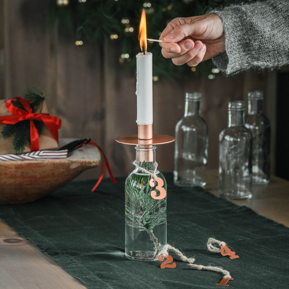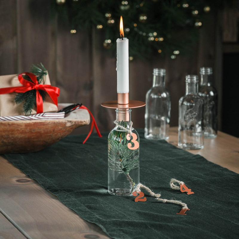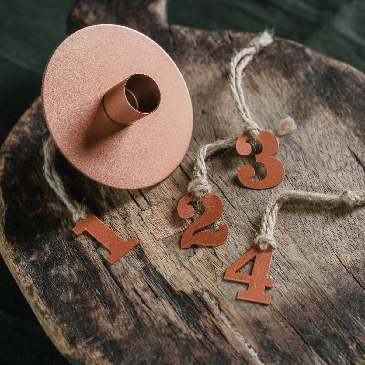Elegant rose gold-colored Advent numbers for Norgesflaskene, delivered in a set with numbers from 1 to 4.