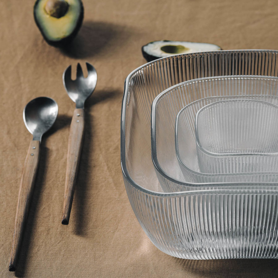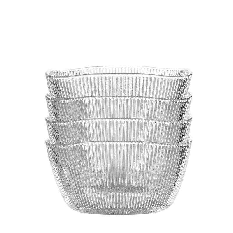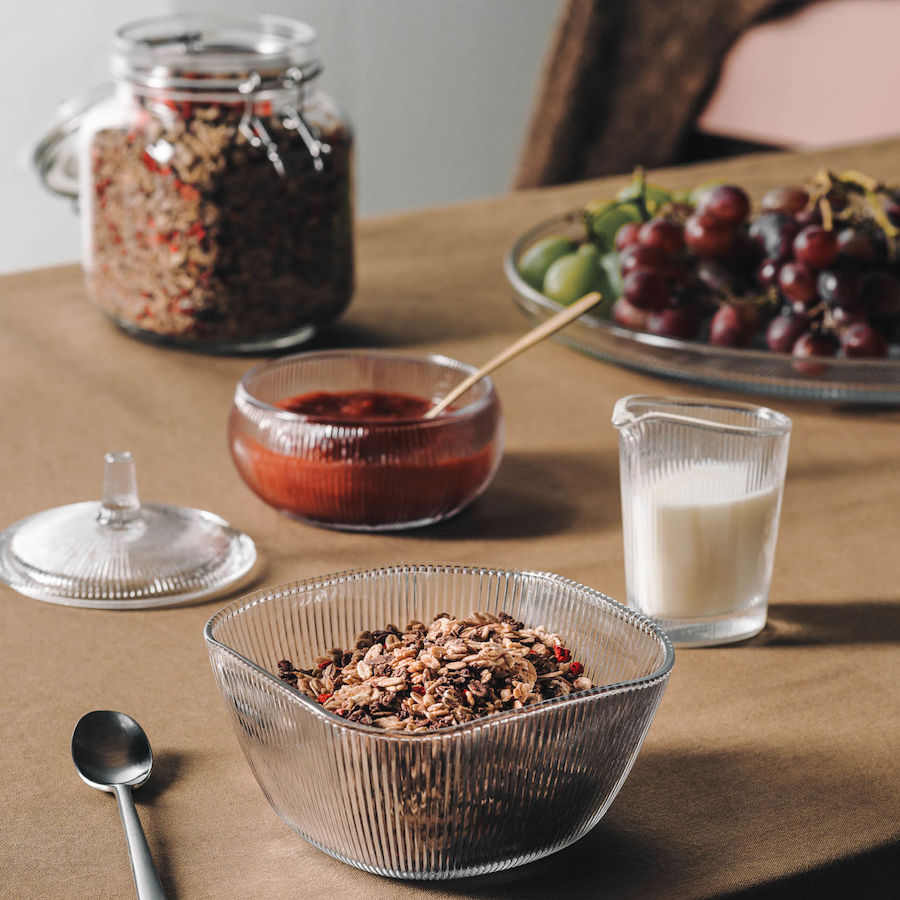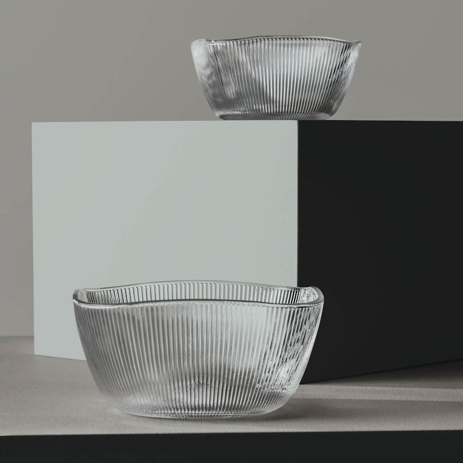 Sleek small bowl with a beautiful ribbed pattern in the glass. The bowl is perfect for muesli and dessert, or as a small serving dish.
