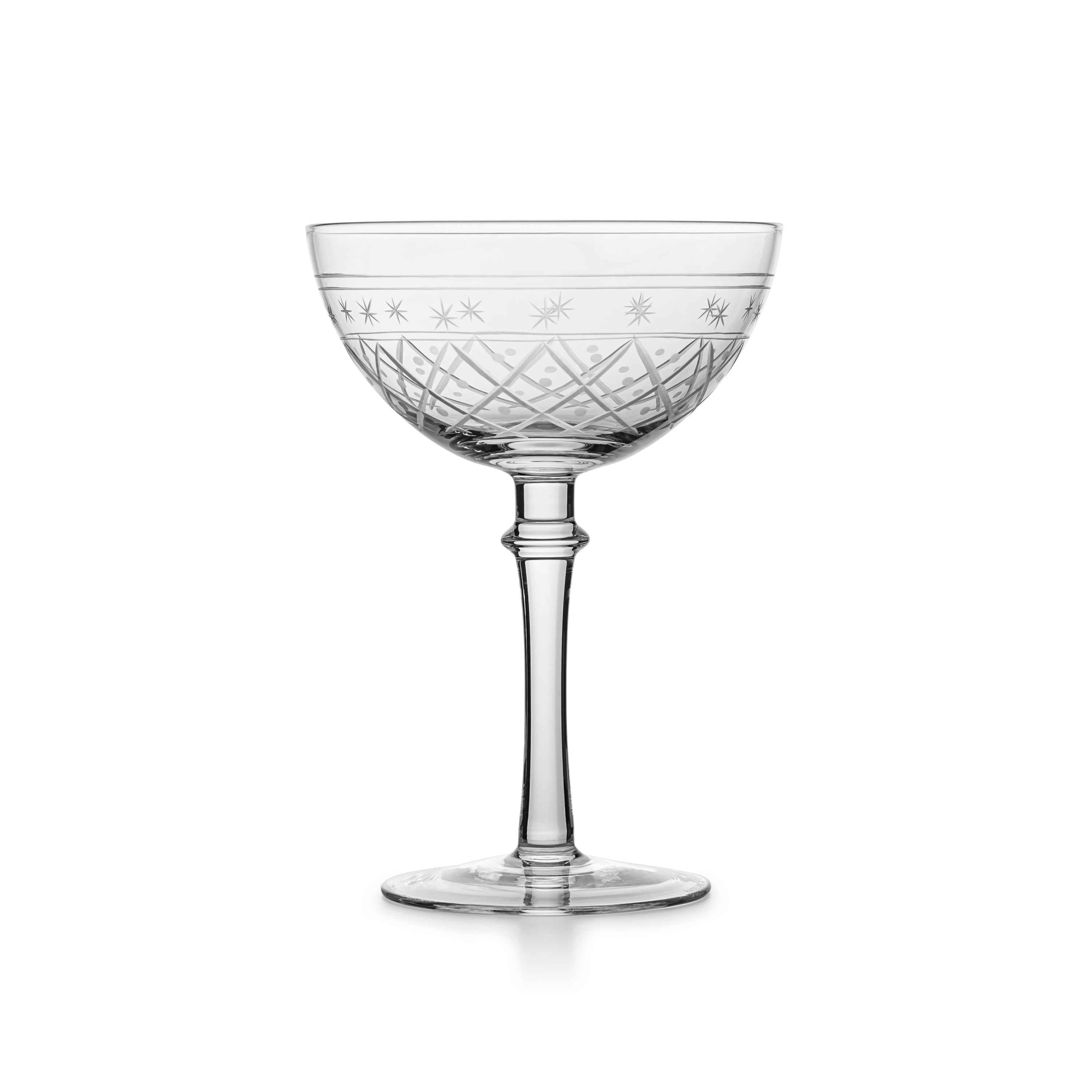 En klassisk champagneskål i håndslipt glass fra Victoria-serien. Ruteslipmønsteret gir et luksuriøst uttrykk, perfekt til champagne, cocktails og festlige anledninger.