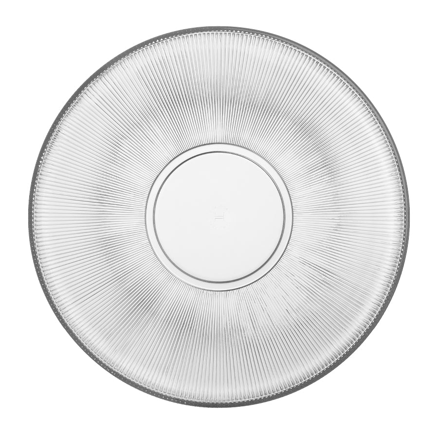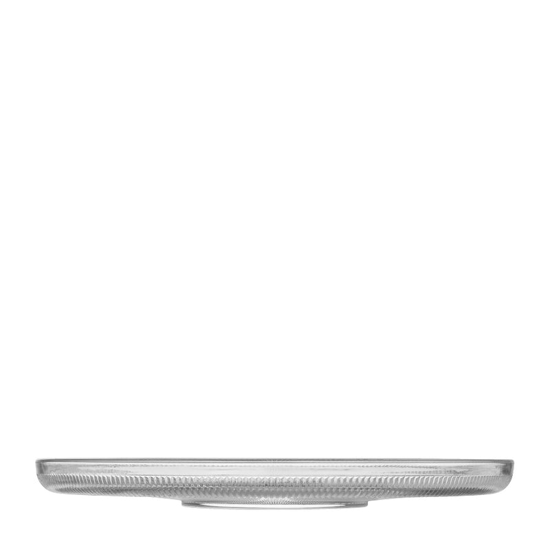 Elegant platter with a beautiful ribbed pattern in the glass. Perfect as a serving dish for breakfast and lunch, or for all kinds of cakes, fruit, and pastries.