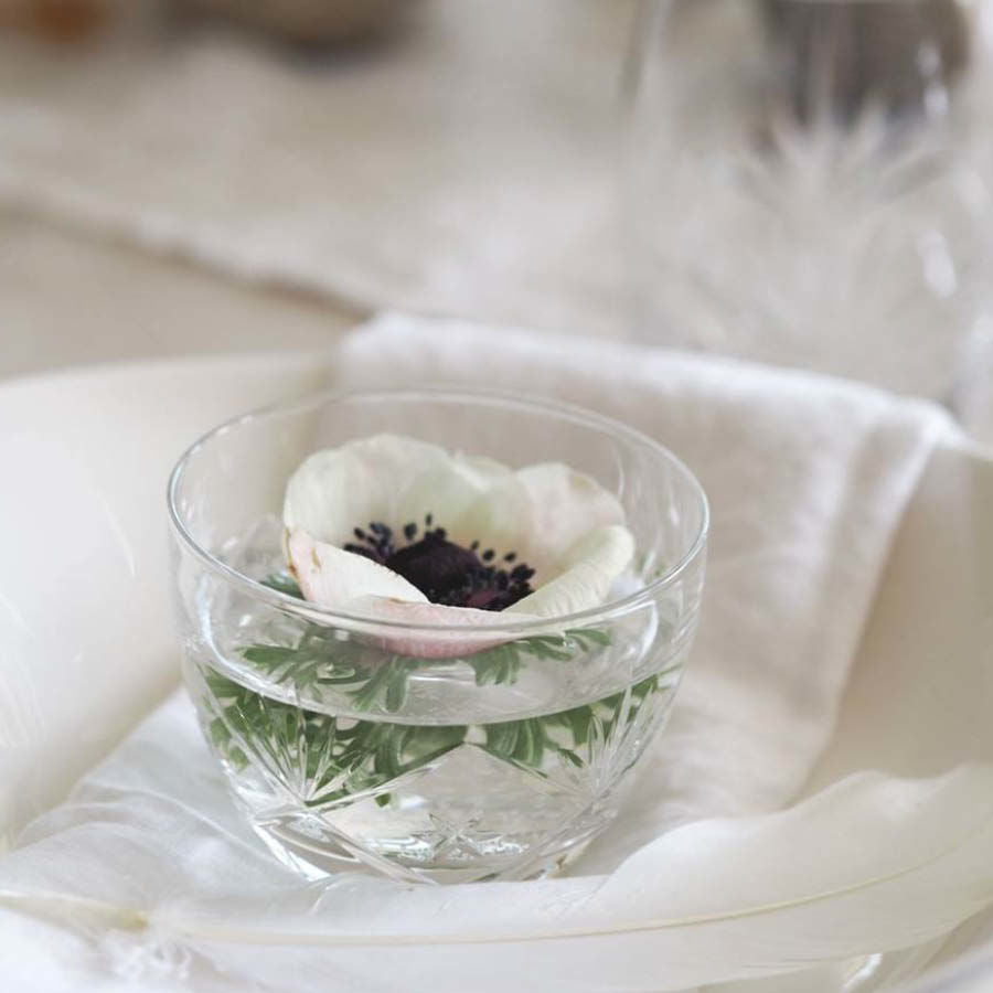 Finn has been produced at Hadeland Glassverk continuously since 1916. The glass is mouth-blown and hand-cut using traditional techniques at Hadeland Glassverk. Design by Ragnvald M. Hansen and Maud Gjeruldsen Bugge.