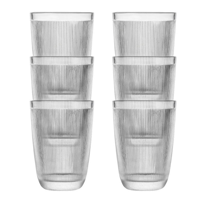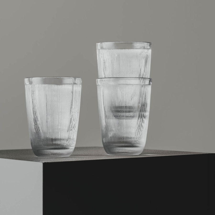 Sleek, minimalist water glasses with a decorative ribbed pattern—perfect for both everyday use and special occasions. The glasses are easy to stack, saving space in your kitchen cabinets. Available in two sizes: 20 cl and 30 cl.