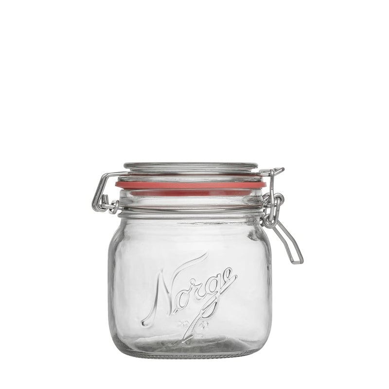The bail lidded Norgesglass jar is perfect for pickling, preserving, home canning and storing food. It is solid, practical and lovely even for decoration. Holds 0,4l.