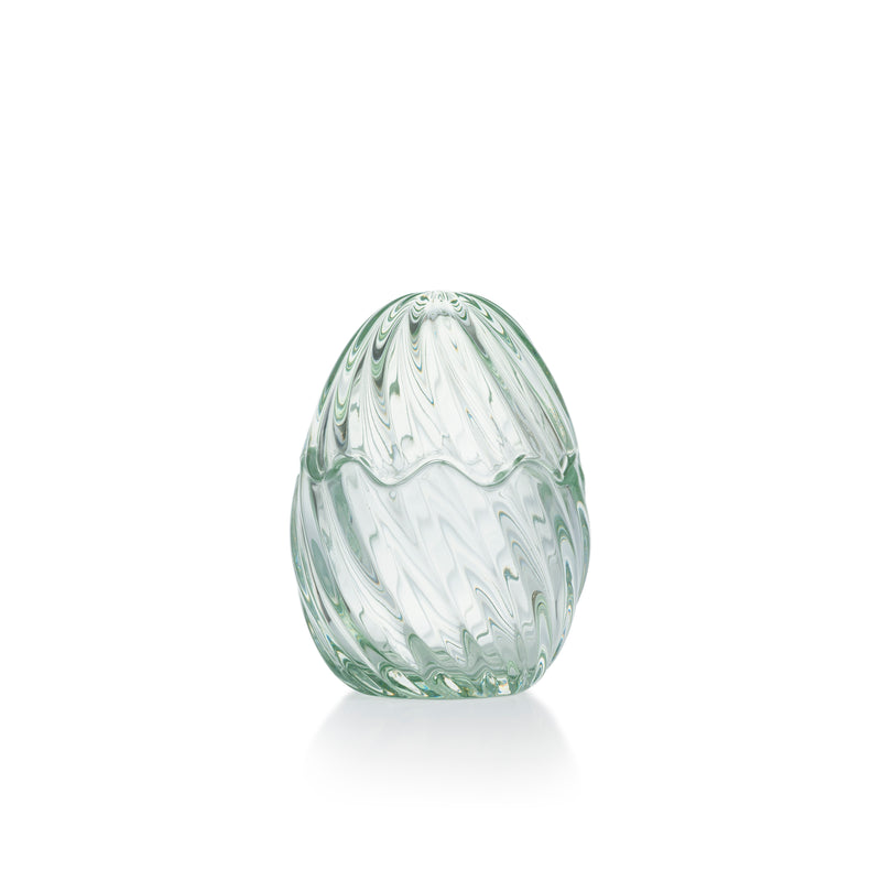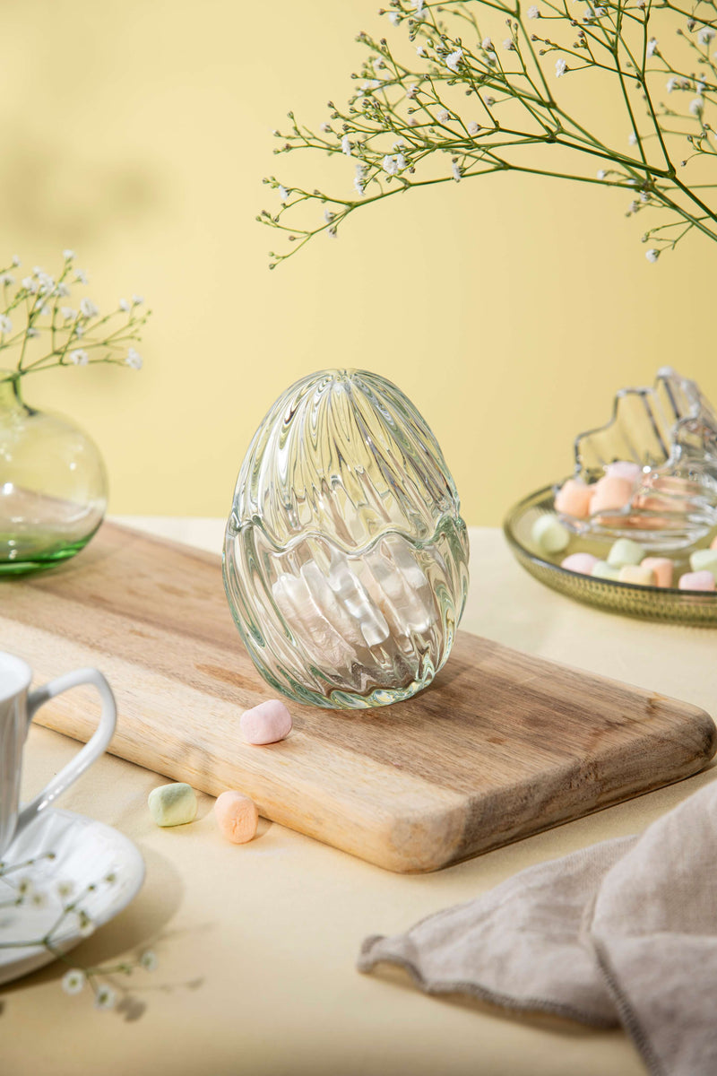 A fresh green version of the classic glass egg with lid. The pronounced optic pattern adds depth and texture, making it a decorative focal point for Easter décor. Ideal for both storage and display.