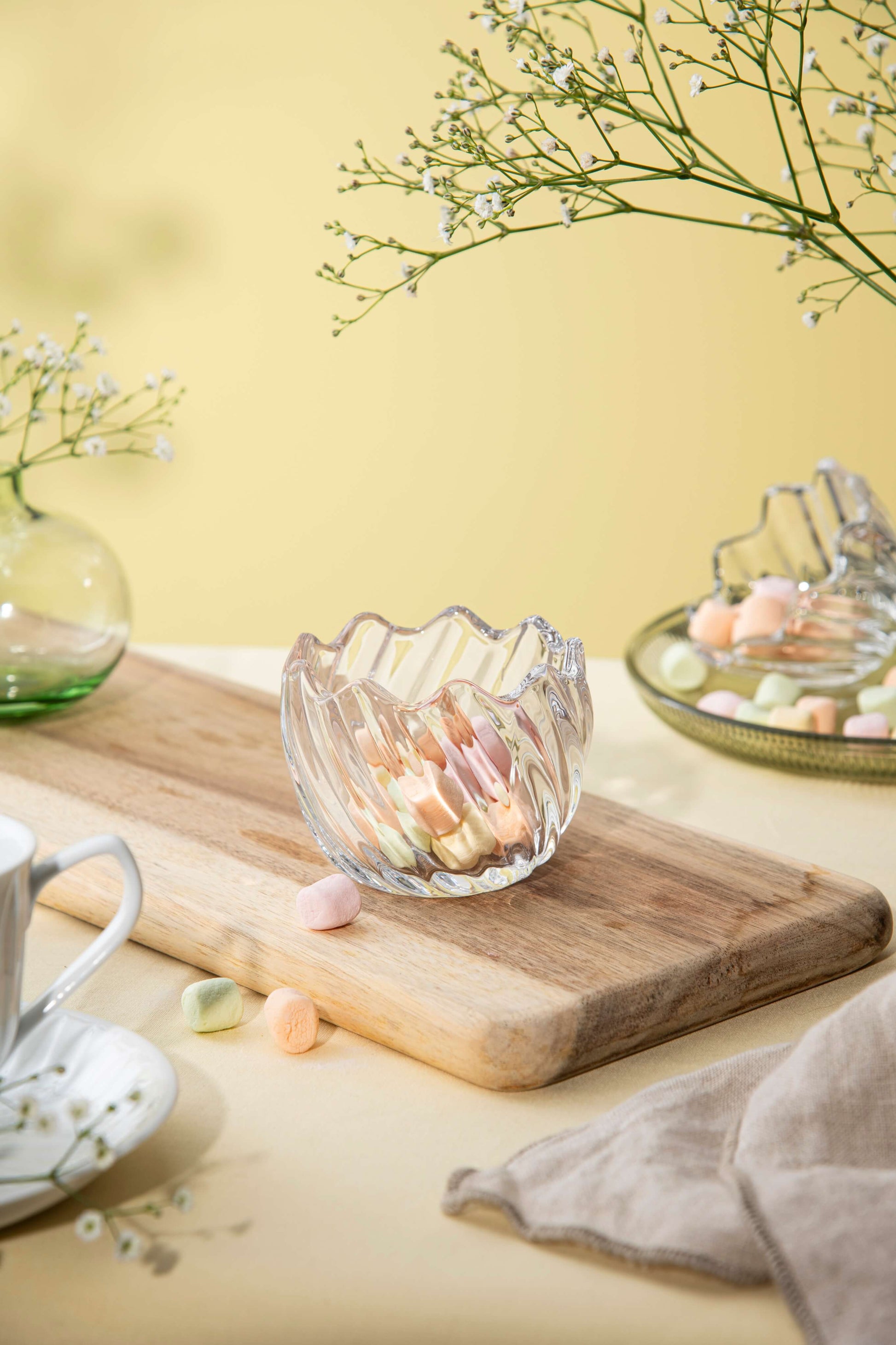 This decorative glass egg with lid features a bold optic pattern that reflects light beautifully. Its compact size makes it ideal for storing Easter treats or small treasures. A timeless piece that combines function and decorative appeal.