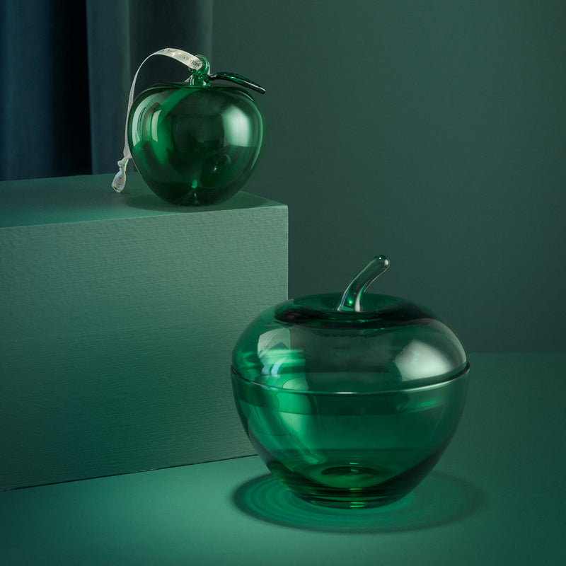 The Green Glass Apple with lid from Hadeland Glassverk is both decorative and practical. The fresh green tone gives a natural expression and beautifully reflects light. Use it for nuts, snacks or treats, or as a striking accent on the table. Perfect as a gift or part of an elegant setting.