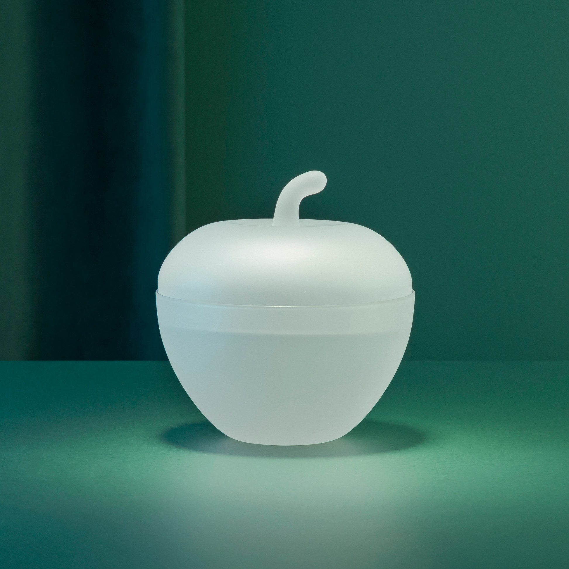 The Frosted White Glass Apple with lid from Hadeland Glassverk is a modern classic. Its matte surface creates a soft, sophisticated look and reflects light beautifully. Perfect as decorative storage or a thoughtful gift. Combine with pink or green variants for a harmonious display.