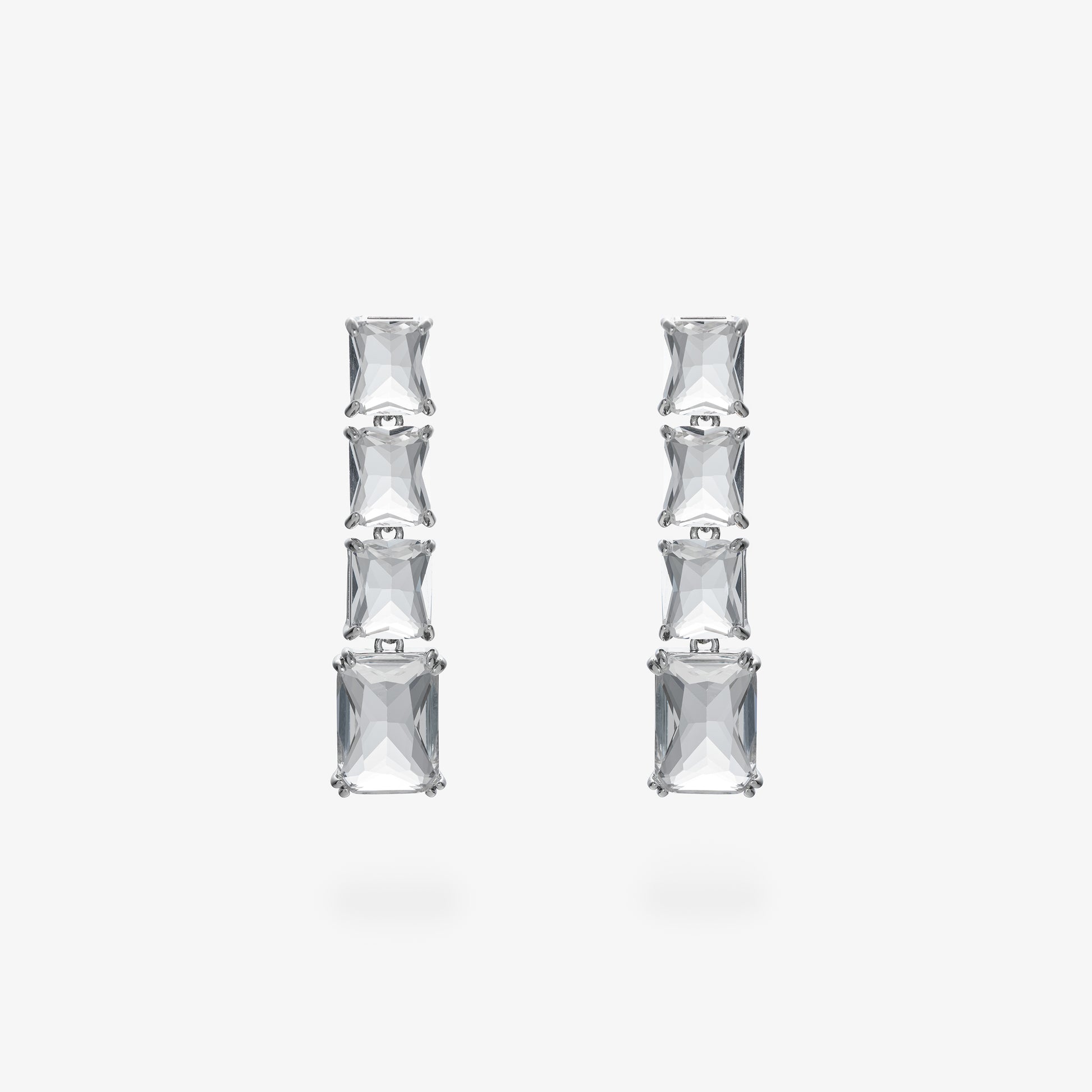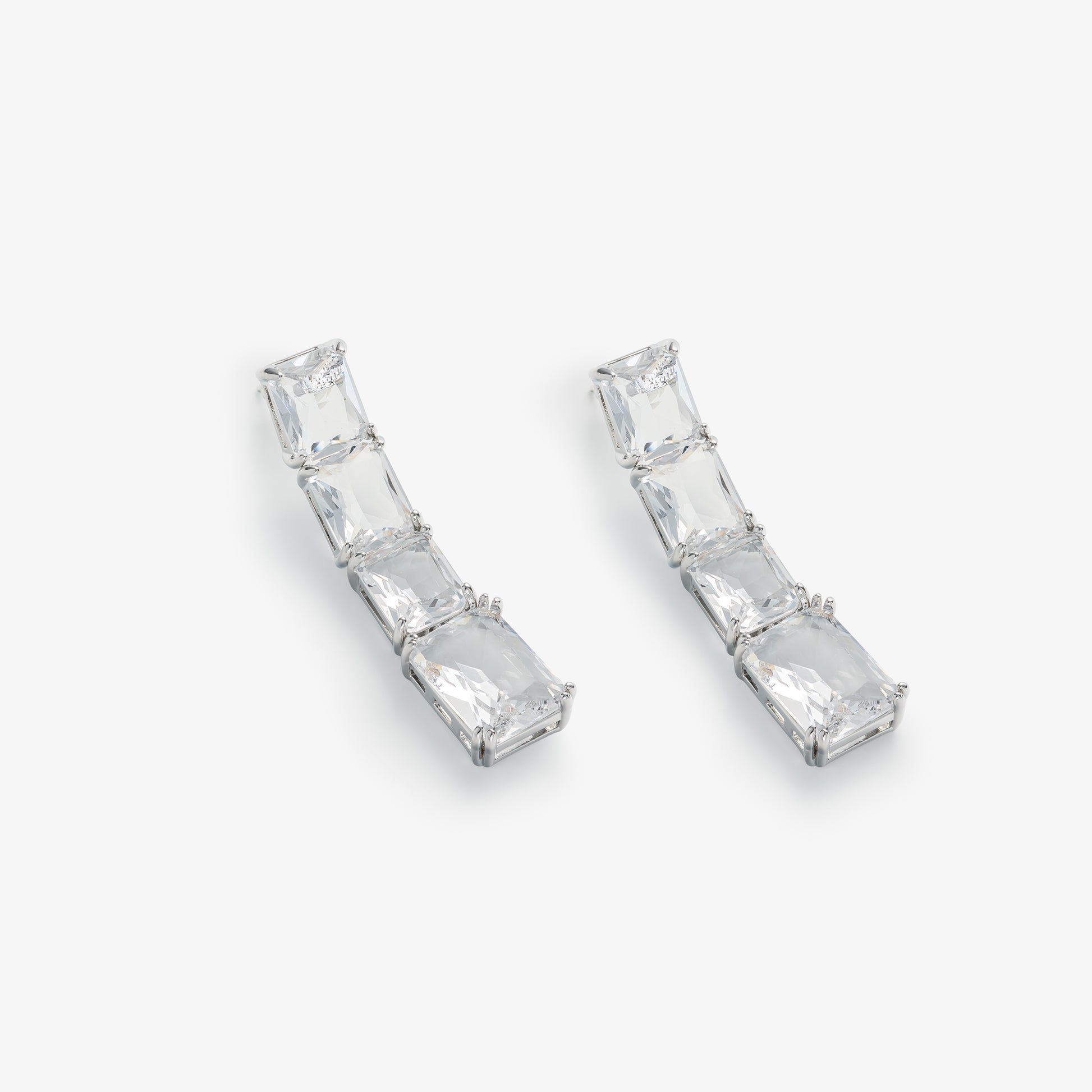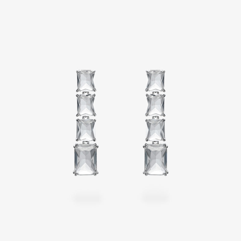 The Glør large earrings are a striking statement piece, featuring oversized clear glass stones that deliver maximum shine and a powerful, clean reflection. The precise rectangular shapes meet 18K gold-plated details in a look that feels luxurious, sharp and confidently bold.