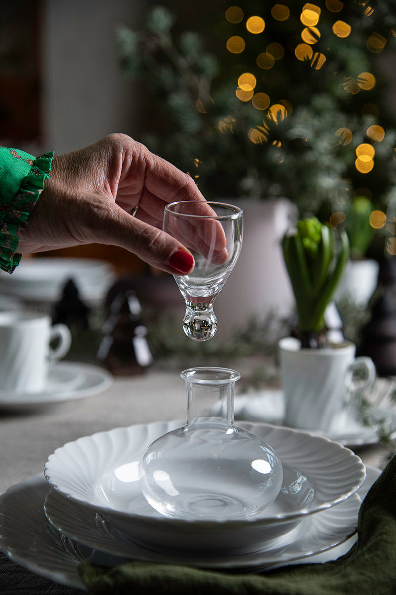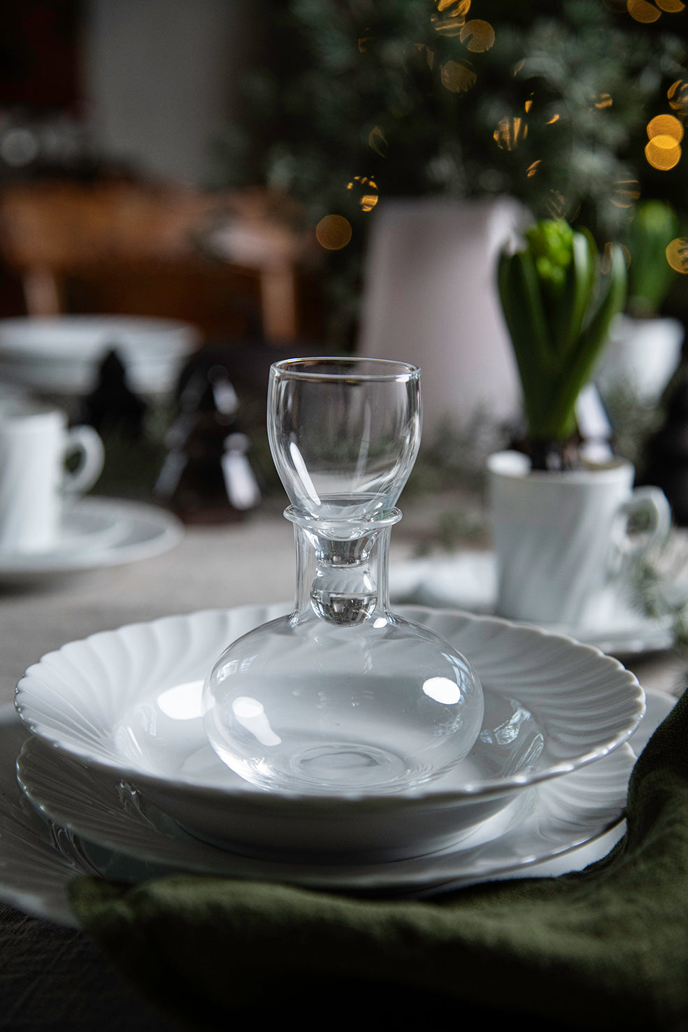 GILDE is a fun addition to the party table. With Gilde Drum carafe, each guest gets its own carafe, and the dram glass is designed so it cannot be put on the table, but must stand like a cork in the carafe. Each Carafe is 20 cl and comes in 4 Carafe packs. Design: Inger Magnus.