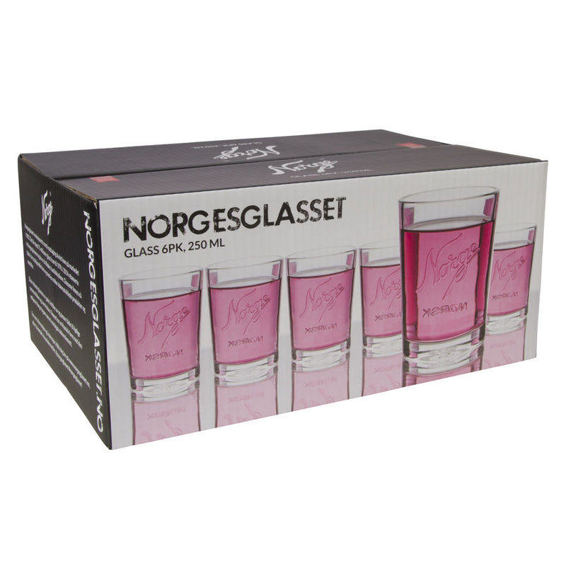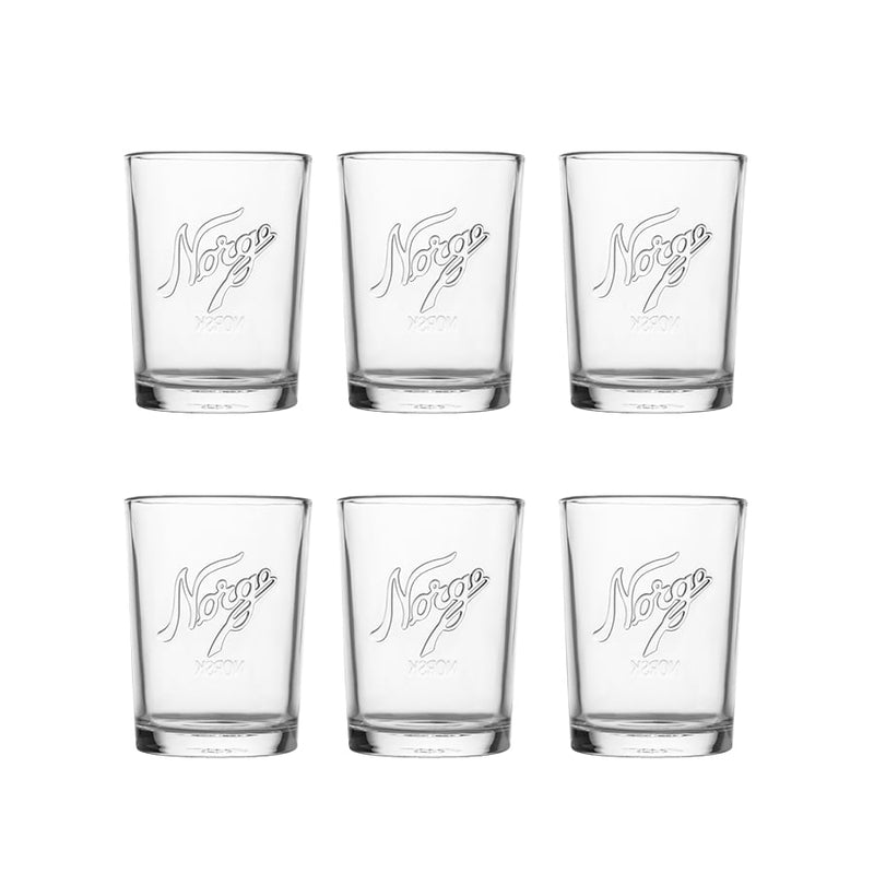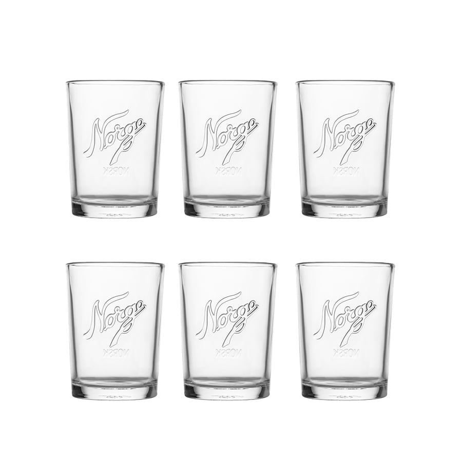 Super popular, small size drinking glasses with the classic Norge-logo. The glasses are solid, and suitable for both hot and cold drinks.