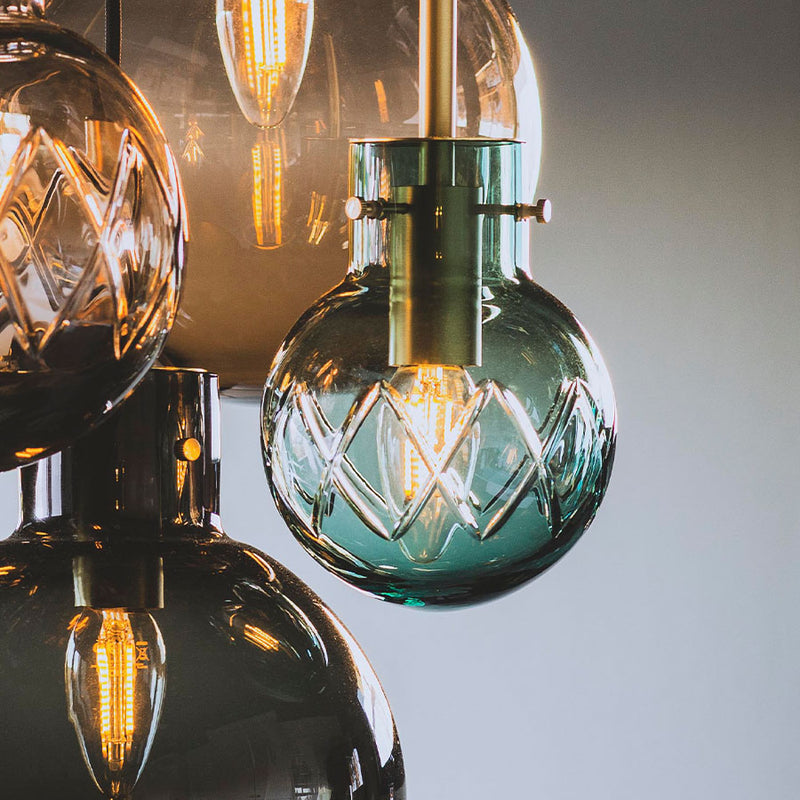 Our unique Crystal Sphere took the market by storm in 2014, and in 2019 was nominated for “Best Product” at the Norsk Lyspris. The lamp series was designed to give customers the opportunity to custom design their own lamp, and therefore consists of a variety of colors and patterns. The lamp is just as beautiful on its own as in a cluster. All our crystal spheres are mouth-blown and hand-cut at Hadeland Glassverk, and over 10 artisans add their personal touch to the lamp before it is sent home to you.