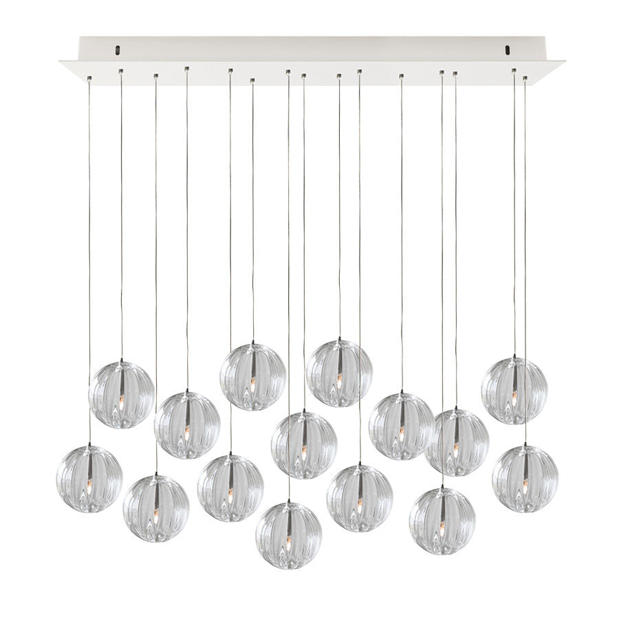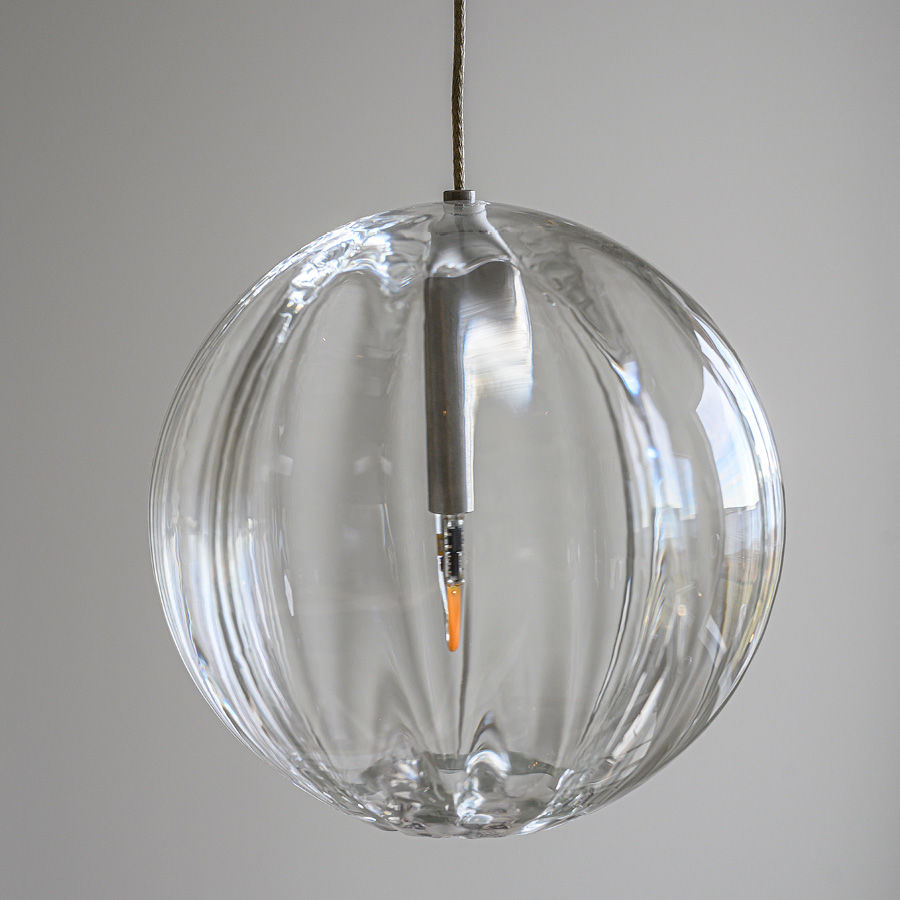 The crystal balls are mouth-blown and hand-polished at Hadeland Glassverk. The balls are available in 120mm, the patterns Optikk and Soda, dome color clear, and suspension color silver. Available for purchase with a minimum of 7 balls.