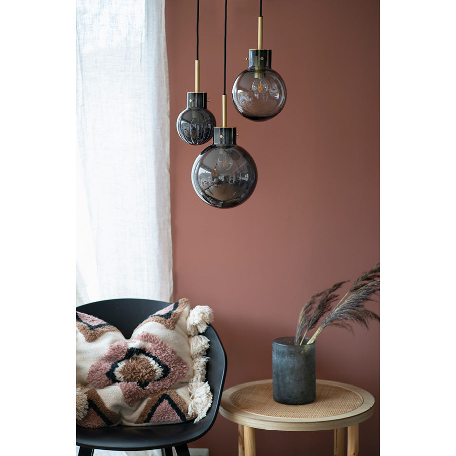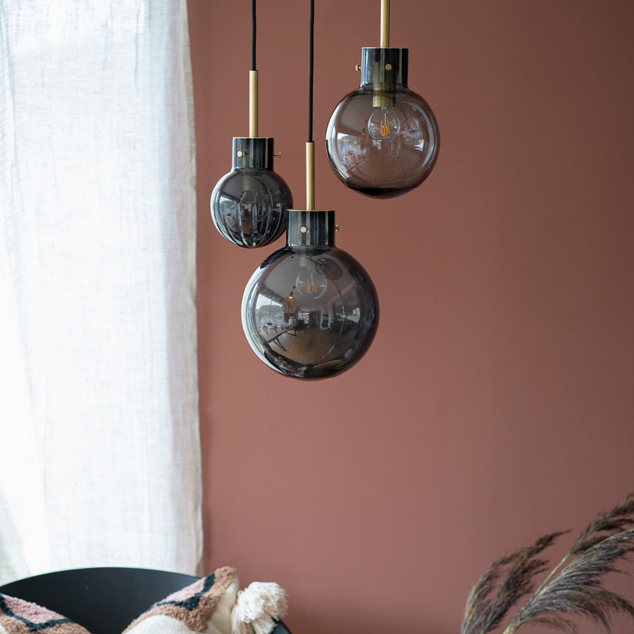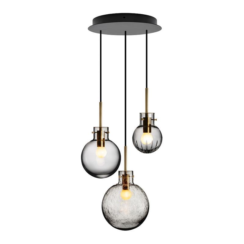 - Suspension for 3 crystal balls in brass with black fabric-covered cable, 3 meters
