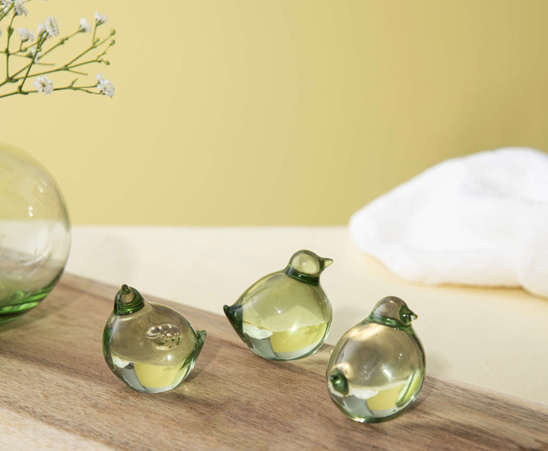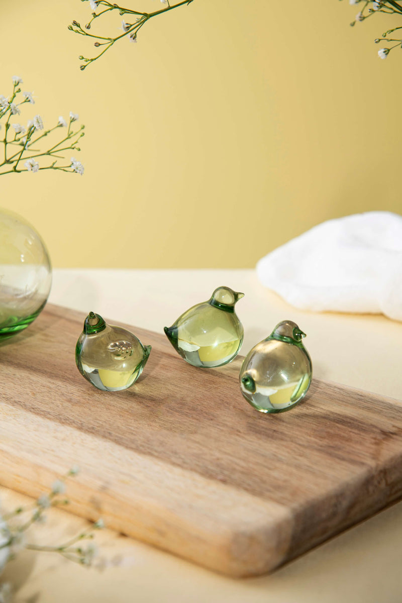 Fresh green chicks that bring a natural feel to Easter décor. Mouth-blown crystal glass adds depth and elegant light play. A charming seasonal detail.