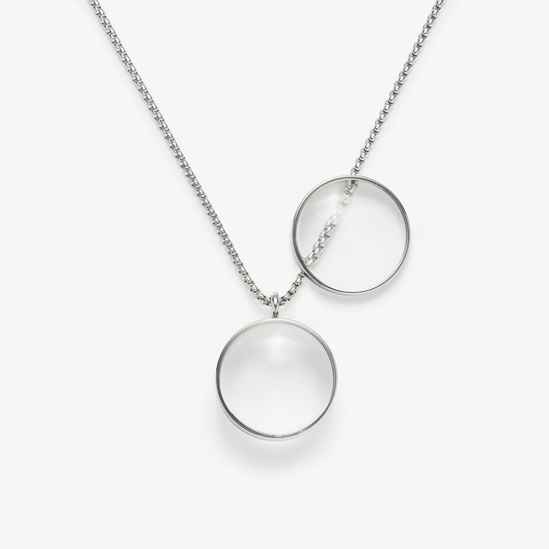 The medium 25 mm size gives the piece a defined presence balanced by the cool, minimal look of stainless steel.