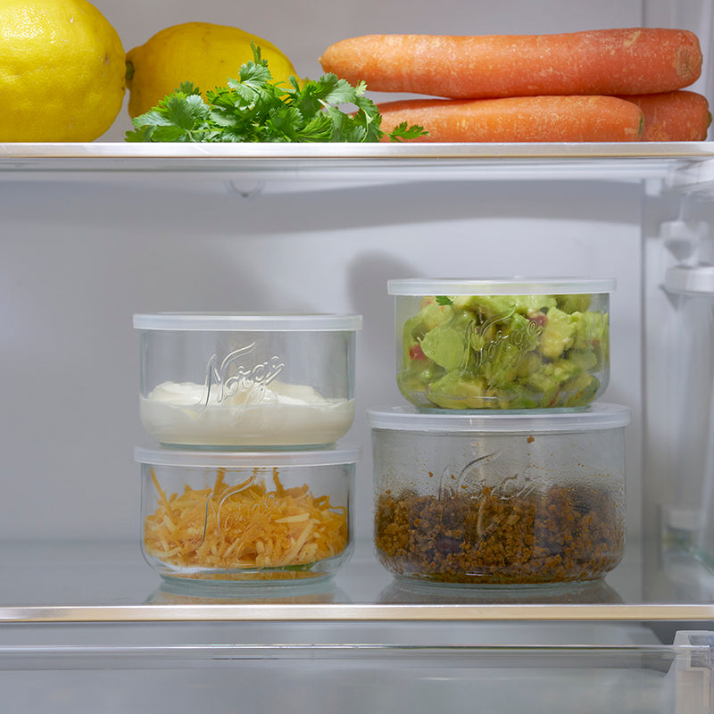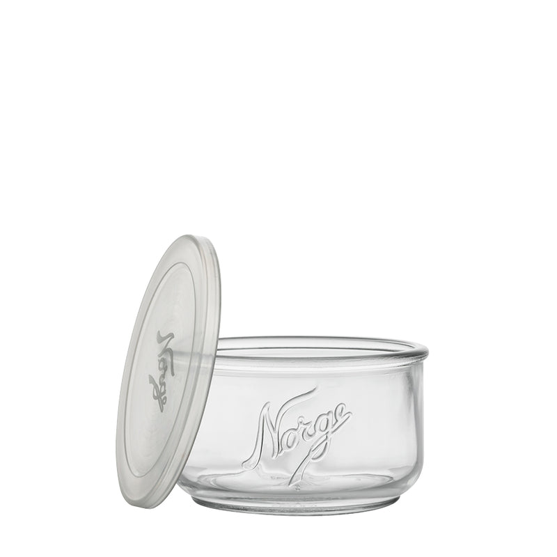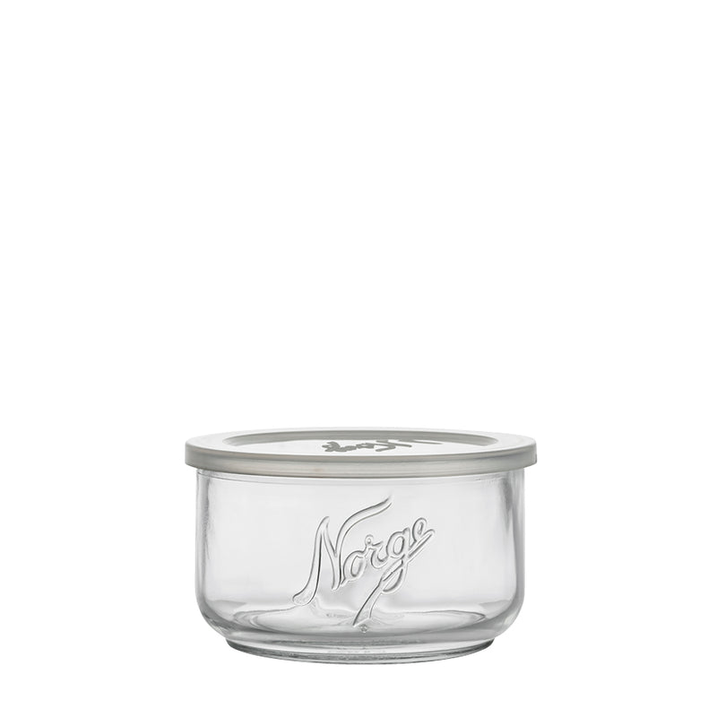 Norgesglass storage jars with plastic lids are excellent for storing both dry and moist foods. The jar holds 370 ml and is made of soda glass.
