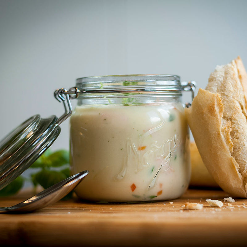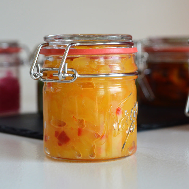 The Norgesglass storage jar with hinged lid is a practical glass jar for storing food in the kitchen. The tight seal makes the jar suitable for storage, pickling and fermentation.