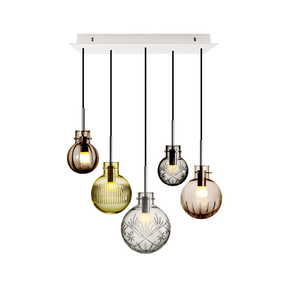 • Crystal spheres Finn Clear 200 mm, Finn Smoky Gray 120 mm, Optikk Cocoa 120 mm, Skjær Olive 160 mm and Large Star Cocoa 160 mm