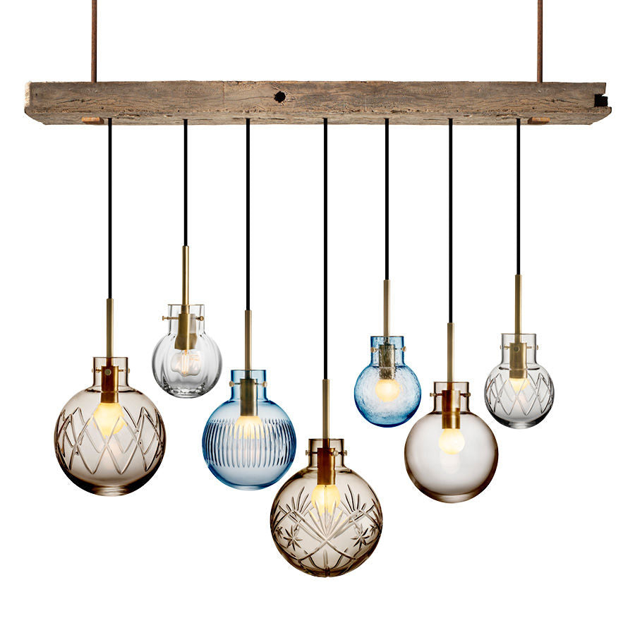 Click home the elegant crystal ball pendant Skjærgård, inspired by the beach, sea, ocean spray, and islets. The crystal balls are mouth-blown and the patterns are diamond-cut by hand following 250-year-old traditions at Hadeland Glassverk.