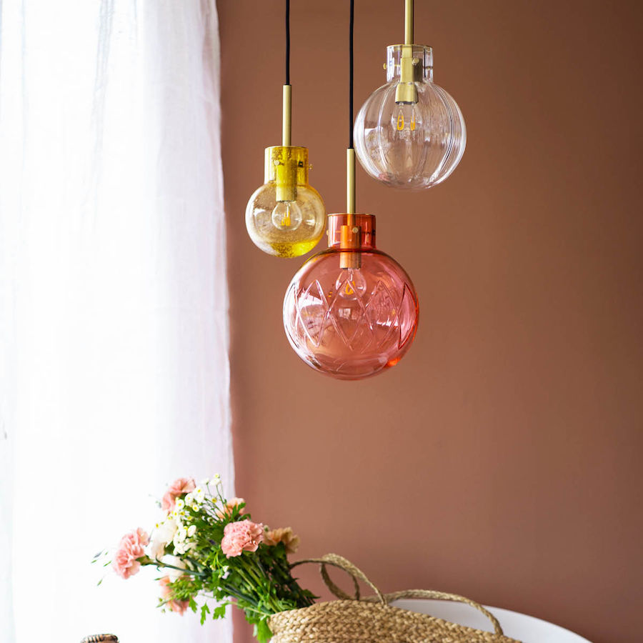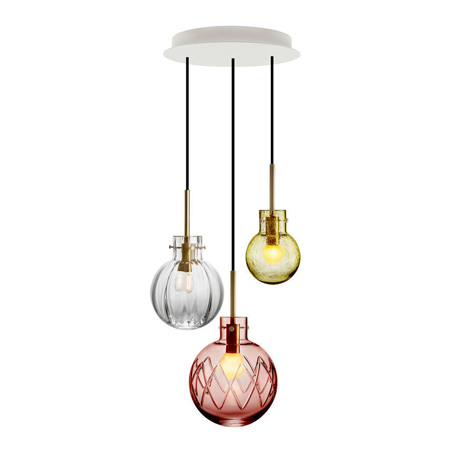 Click home the elegant Sommereng crystal globe pendant, inspired by a fragrant meadow with red clover and daisies. The crystal globes are mouth-blown and the patterns are hand diamond-cut according to 250-year-old traditions at Hadeland Glassverk.