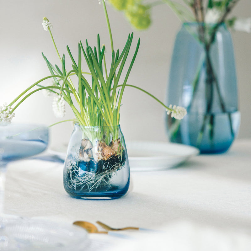 The Siccori vases have soft shapes and come in three sizes. They accommodate the needs of various types of flowers and bouquets. The vases look beautiful grouped together, but also work well individually. Siccori vases are lovely for generous tulip bouquets, rose bouquets, a single branch, or freshly picked wildflowers. They are available in both clear and colored glass.