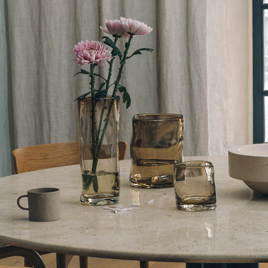 Sine is a series of organic, unique vases in three sizes. All vases are mouth-blown by skilled artisans at Hadeland Glassverk.