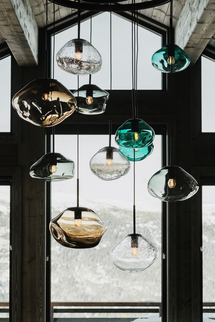 En unik kolleksjon av munnblåste lamper inspirert av is, stein og vann i bevegelse.