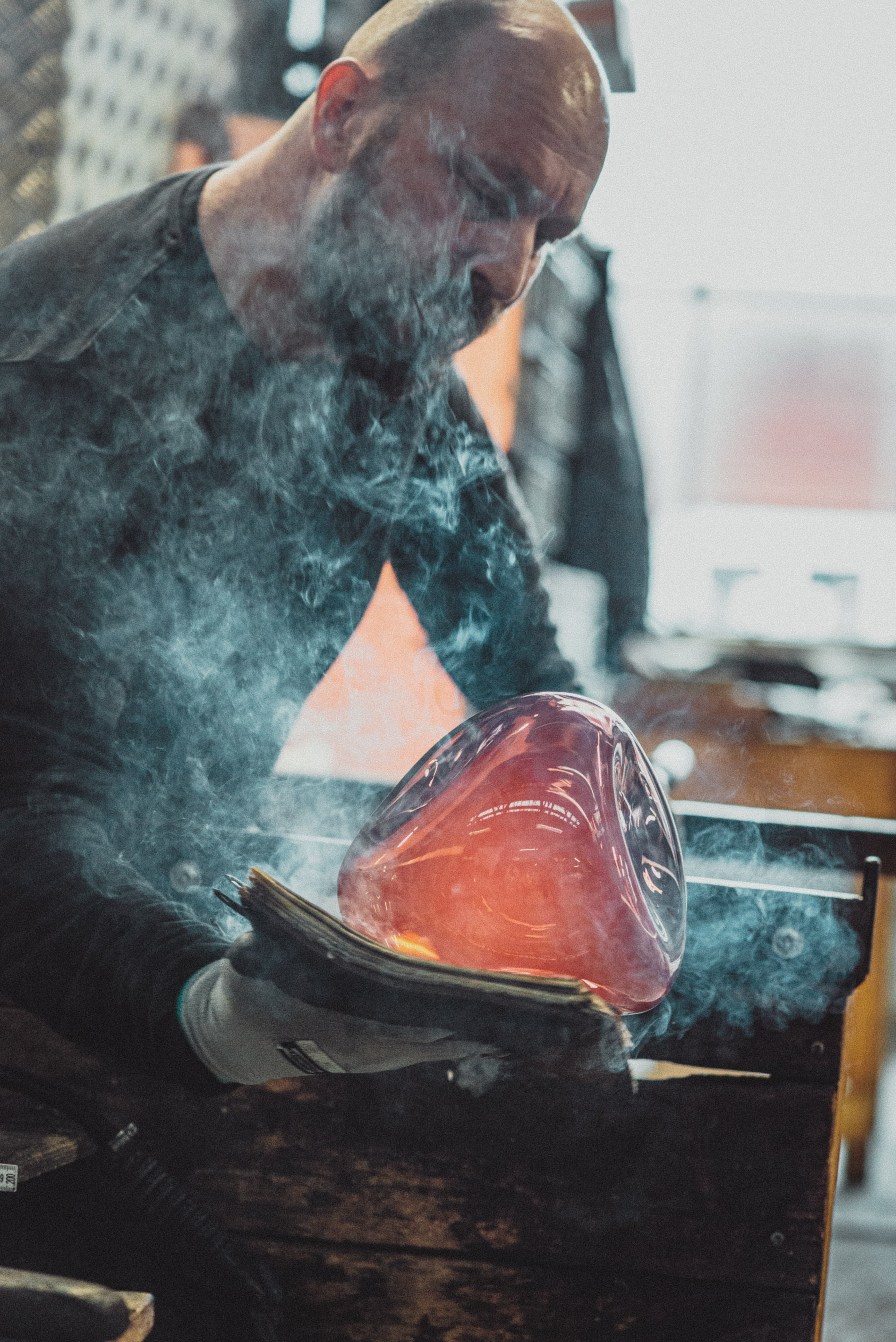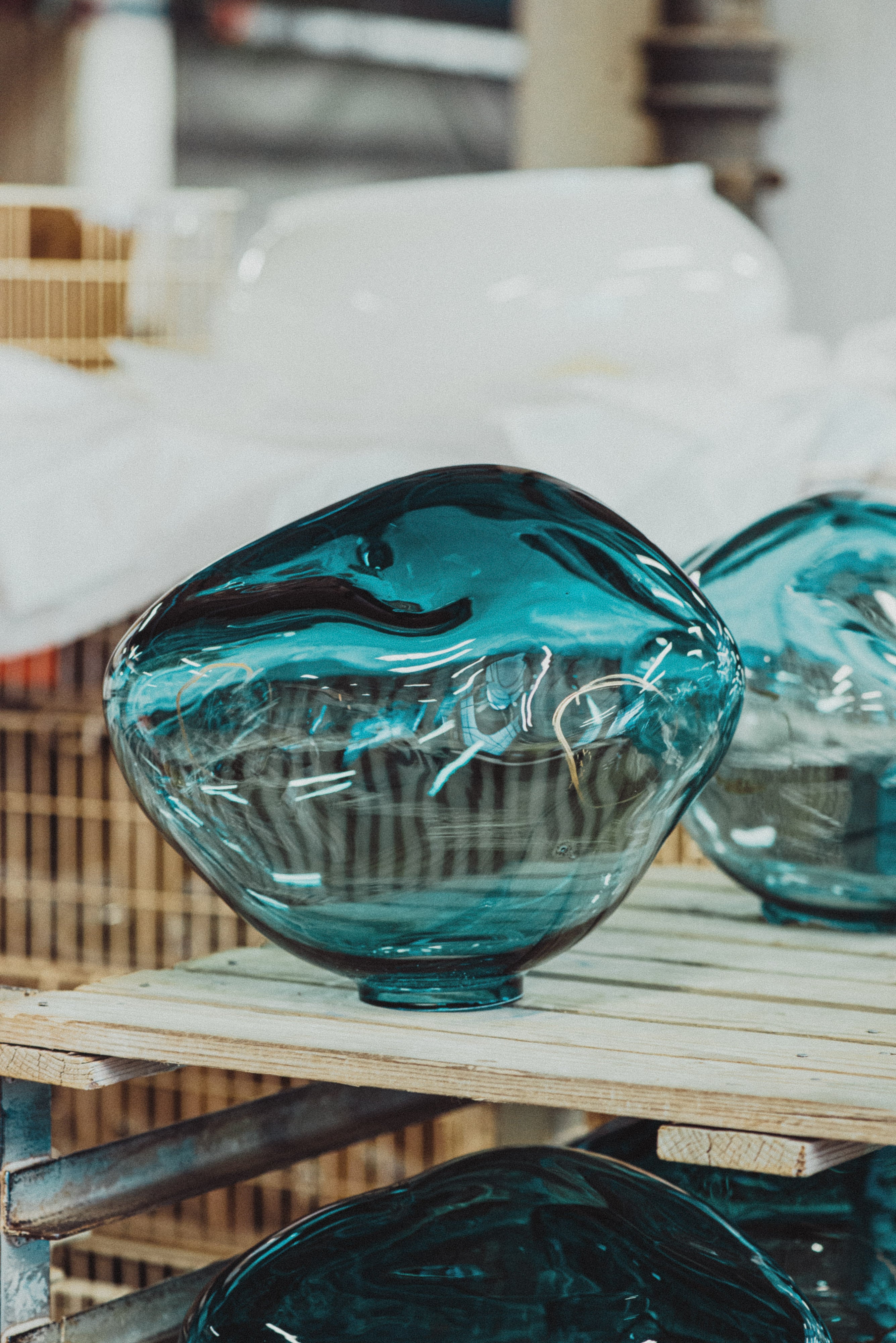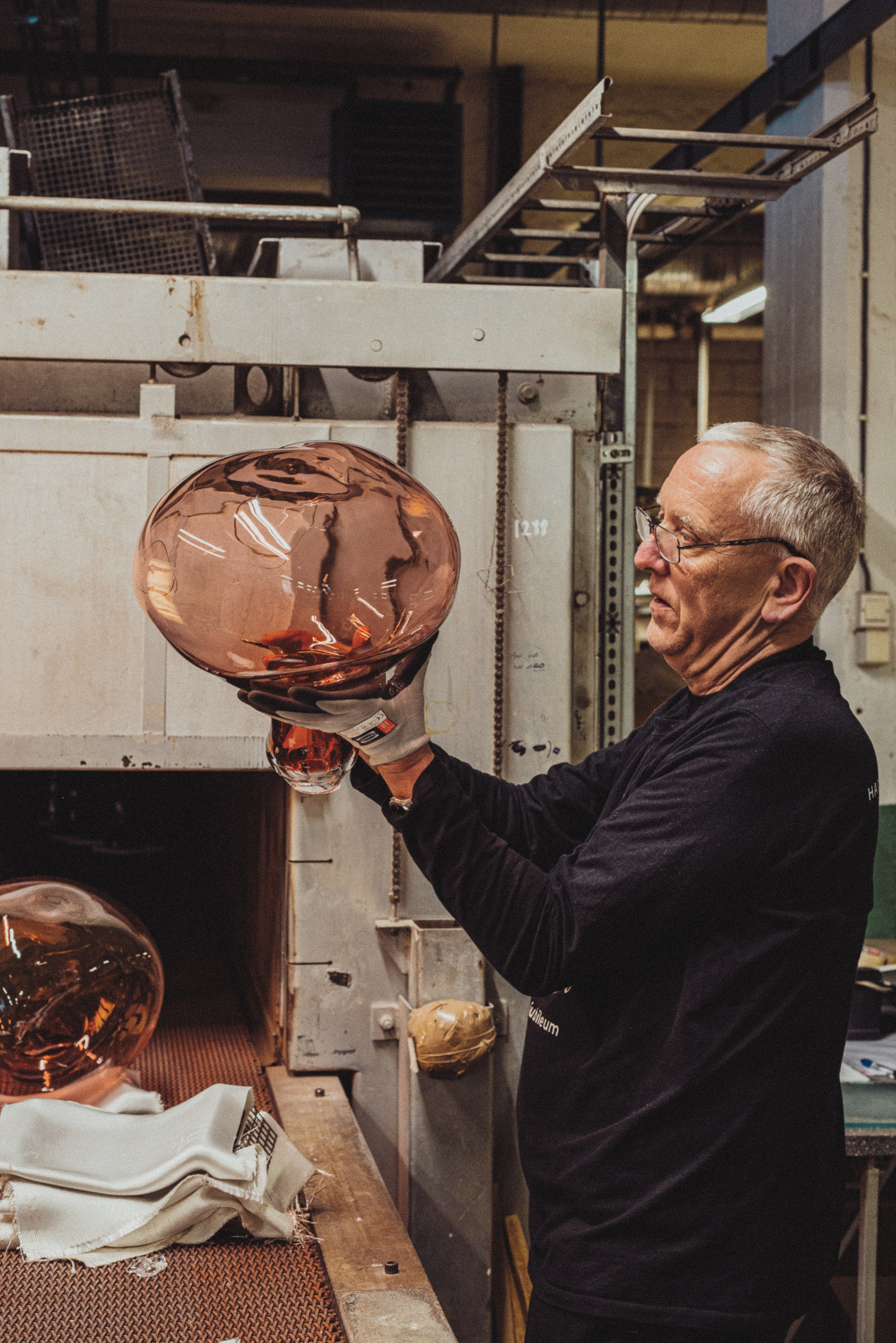 Akkurat som steinene formes av vann, vind og vegetasjon, former våre dyktige glassblåsere hver lampe for hånd. Den glødende glassmassen er i konstant bevegelse – et spill mellom glass, lys og farger som skaper noe helt spesielt. De dempede fargetonene harmonerer med naturens egen palett som skifter uttrykk med årstidene.