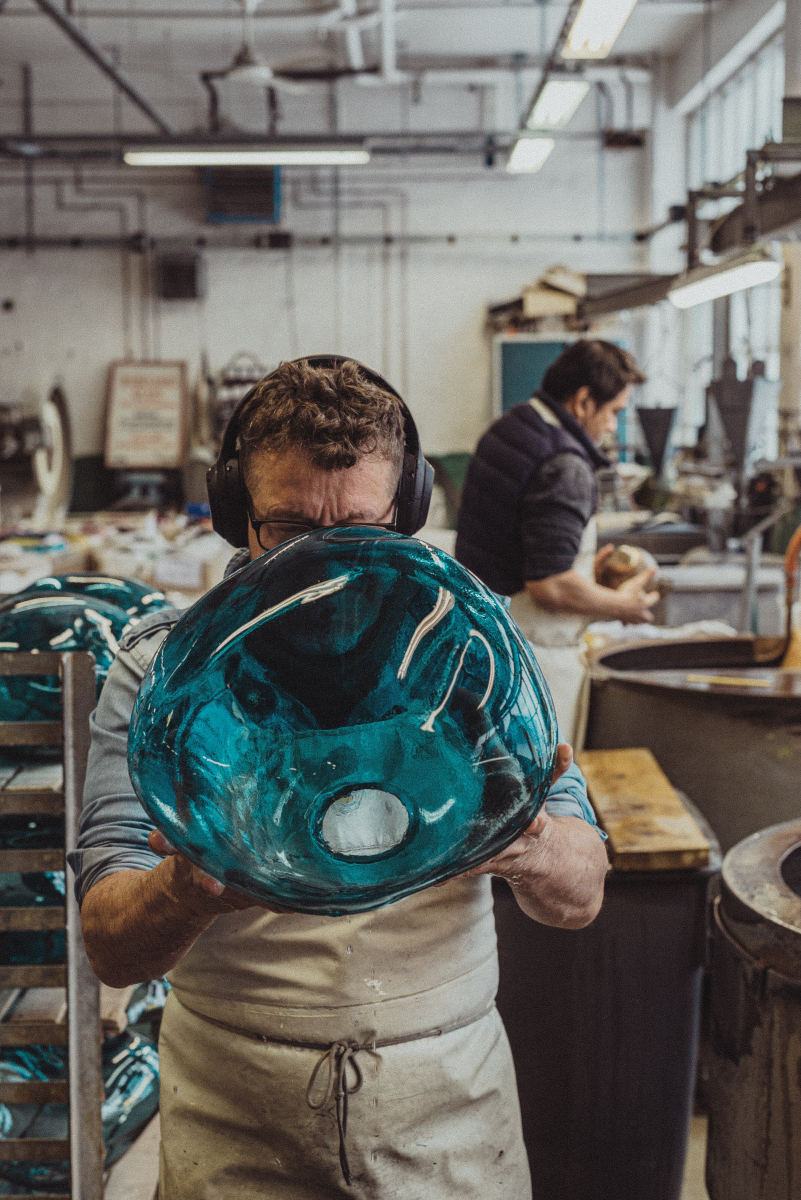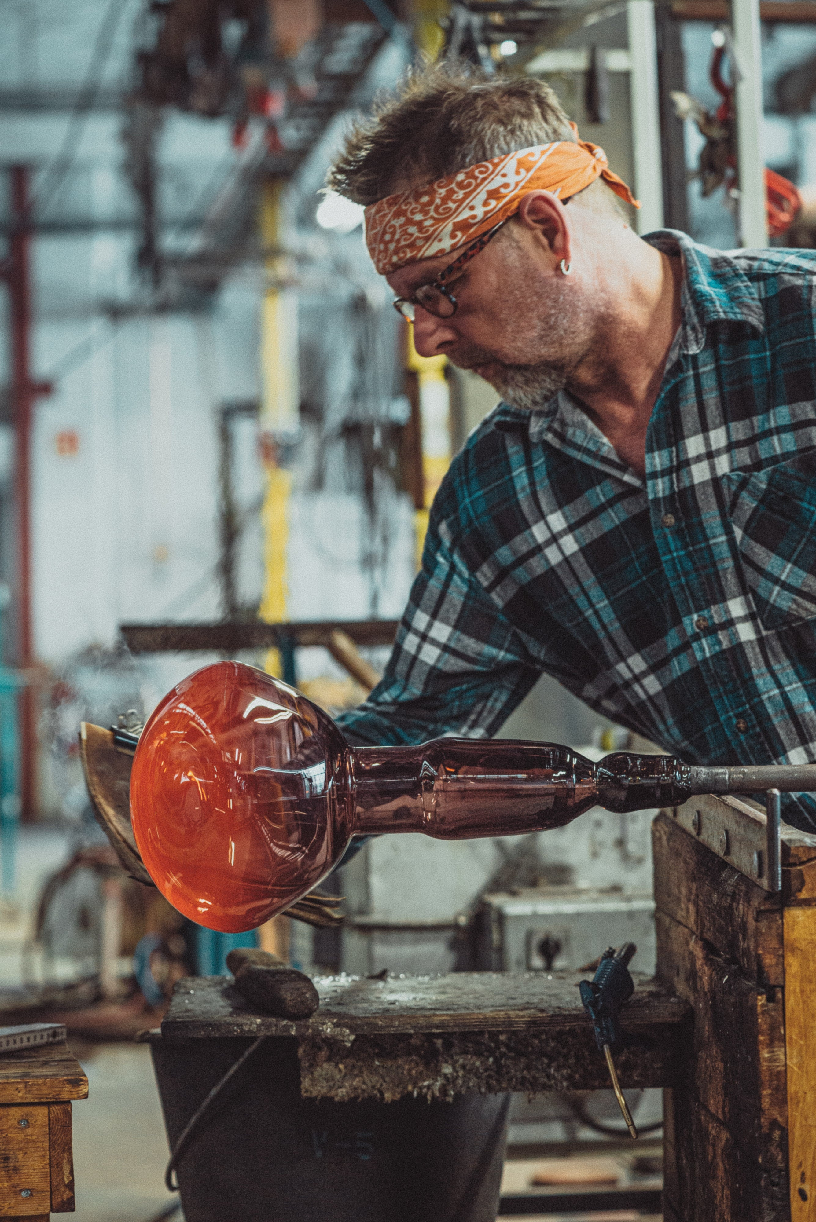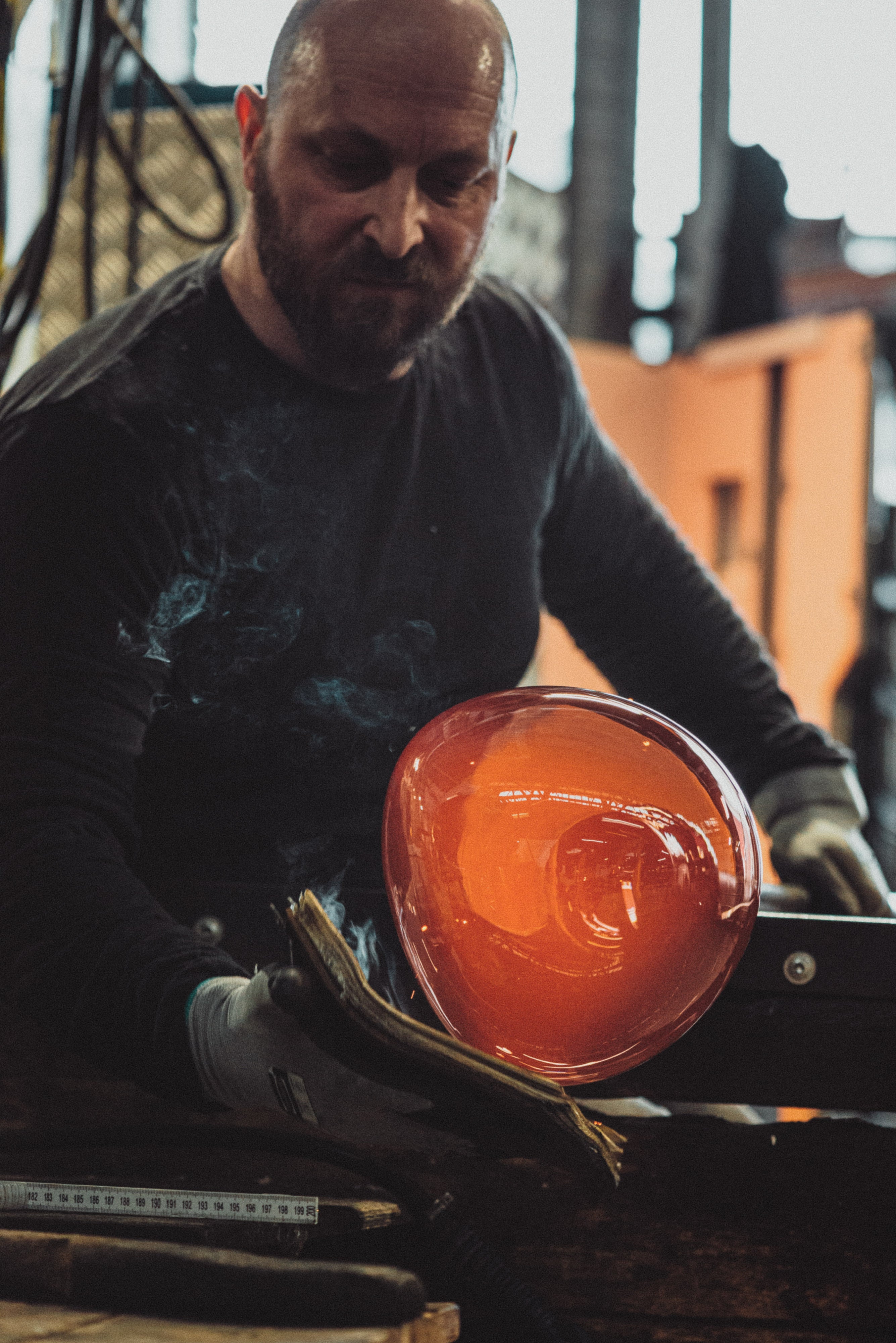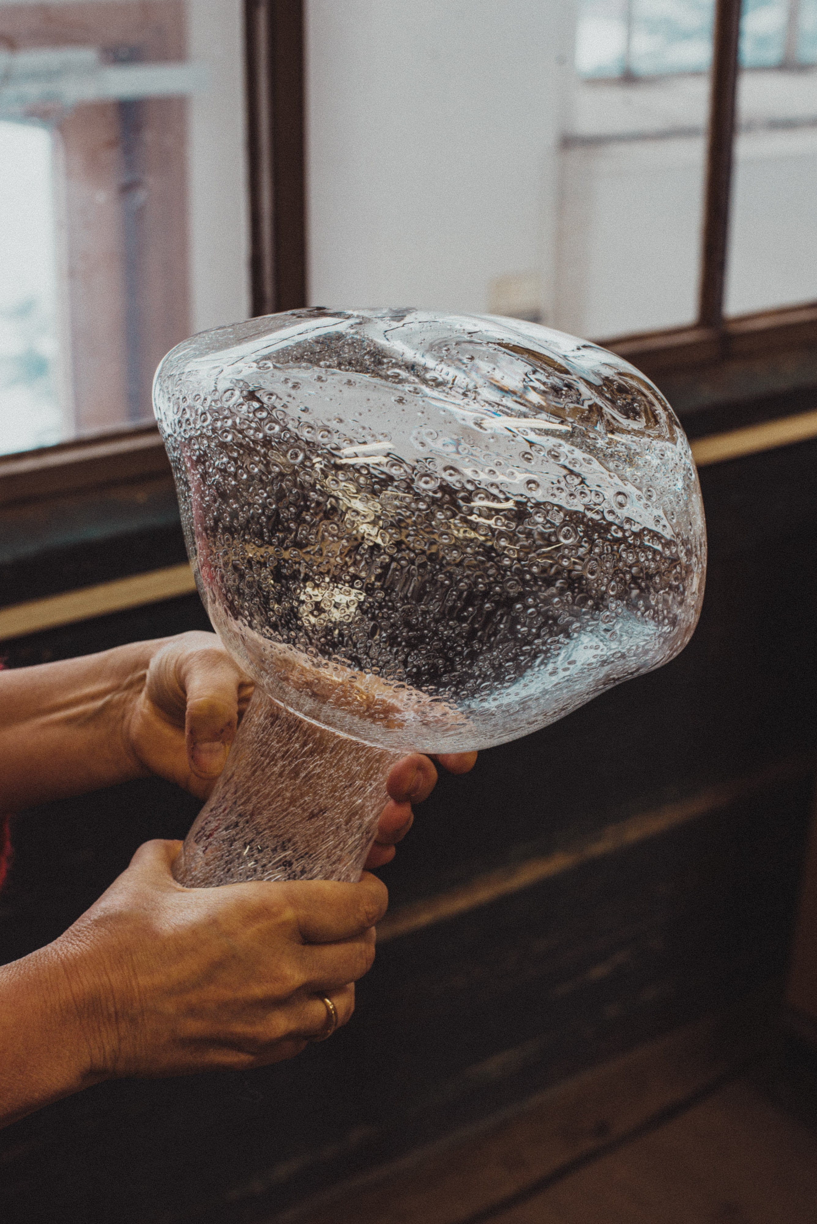 Akkurat som steinene formes av vann, vind og vegetasjon, former våre dyktige glassblåsere hver lampe for hånd. Den glødende glassmassen er i konstant bevegelse – et spill mellom glass, lys og farger som skaper noe helt spesielt. De dempede fargetonene harmonerer med naturens egen palett som skifter uttrykk med årstidene.