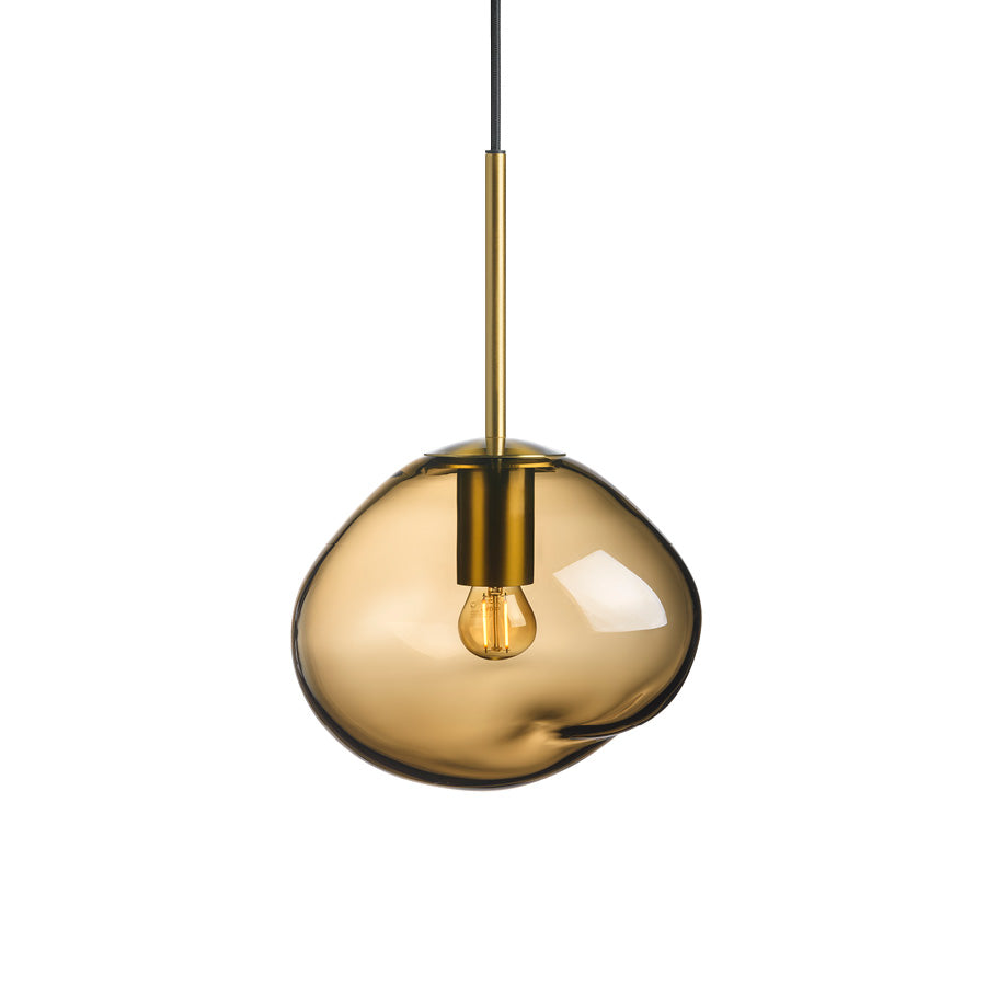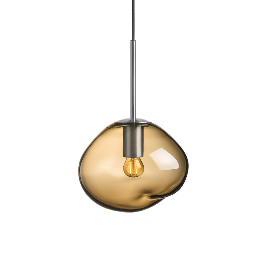 Kakao fargede glasspendellampe inviterer til en følelse av varme og komfort. Rike jordtoner og varme sanddyner. Alle lampene er munnblåst og den organiske formen skapes når glassmassen er varm, dette gjør at hver eneste kuppel blir unik. Fargen Kakao er lett å kombinere med alle de andre fargene i serien.