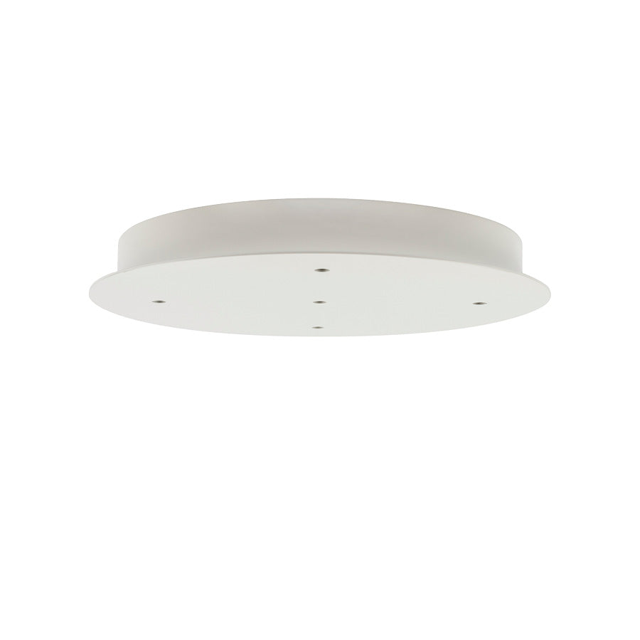 Hvit, rund takbaldakin til 5 lampekupler. Lampekuplene blir hengende sammen, med med noe spredning. Kuplene kan med fordel henges i 5 ulike høyder, for å komme mest mulig til sin rett. Passer i et hjørne, i en trappeoppgang eller over et rundt spisebord.