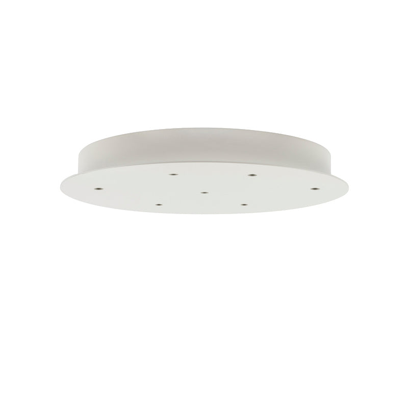 Hvit, rund takbaldakin til 7 lampekupler. Lampekuplene blir hengende sammen, med med noe spredning. Kuplene kan med fordel henges i 7 ulike høyder, for å komme mest mulig til sin rett. Passer der man ønsker et blikkfang av en lampe, f.eks over et rundt spisebord eller i en hall.