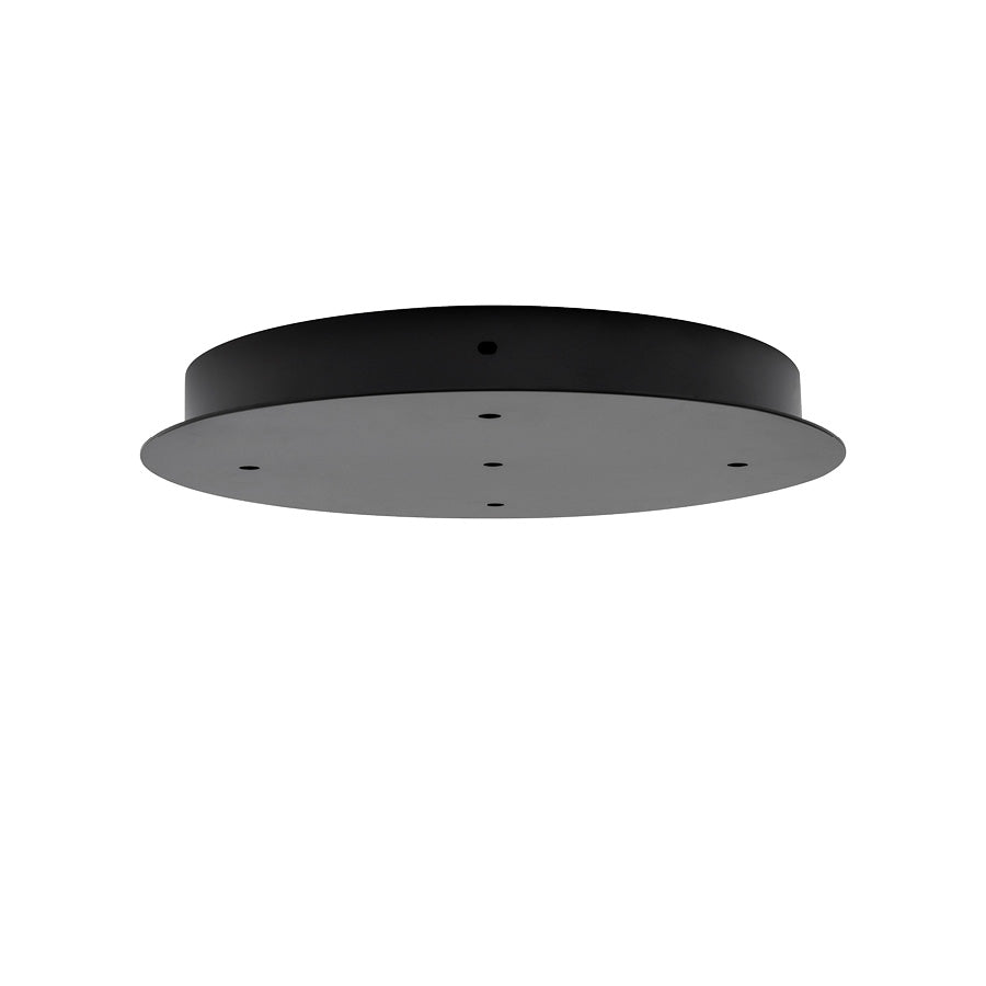 Sort, rund takbaldakin til 5 lampekupler. Lampekuplene blir hengende sammen, med med noe spredning. Kuplene kan med fordel henges i 5 ulike høyder, for å komme mest mulig til sin rett. Passer i et hjørne, i en trappeoppgang eller over et rundt spisebord.