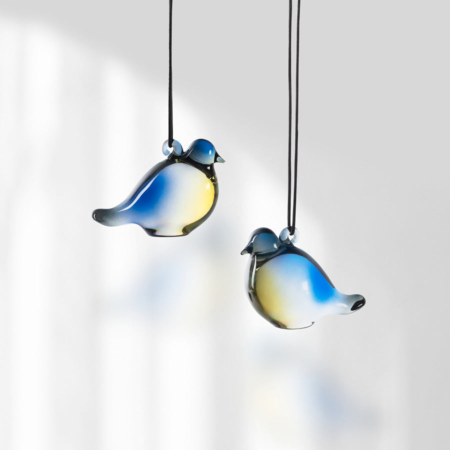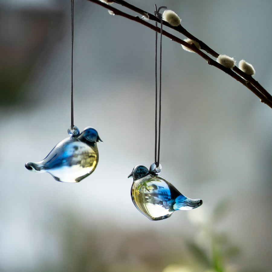 Blåmeis hengepynt 2 pk fra Hadeland Glassverk er inspirert av vinterens småfugler. De håndlagde fuglene i blått og gult glass sprer lys og varme når de henger i vinduet eller på juletreet. Munnblåst kvalitet og delikate detaljer gjør hver fugl unik.