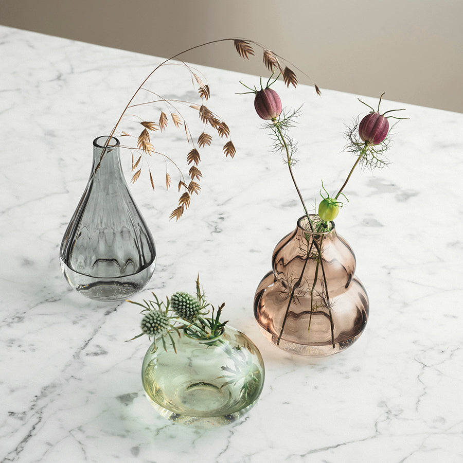 3 små vaser i lekker gaveeske – til enkle blomsterarrangementer eller som dekor i seg selv.