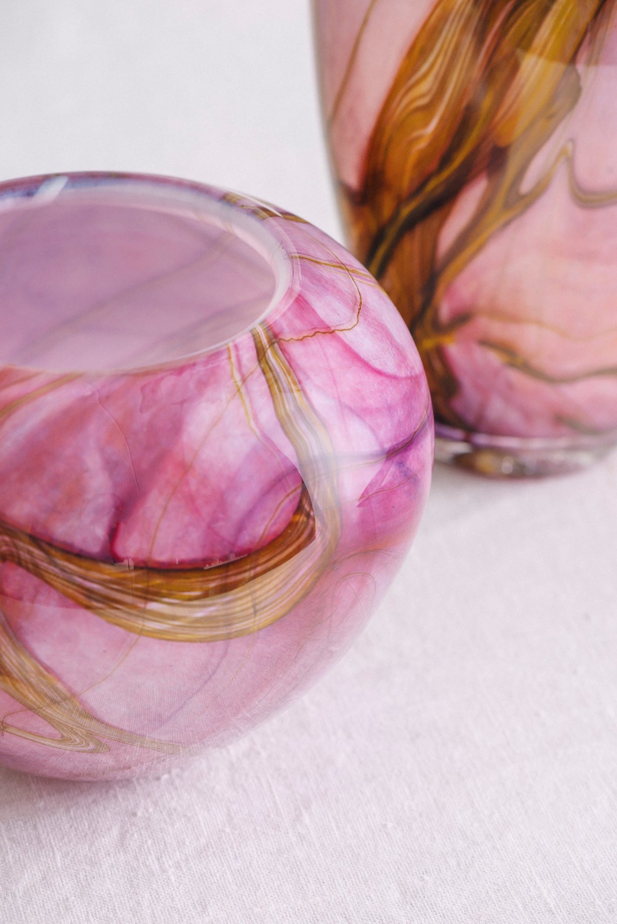 Red Morning har et estetisk mykt formspråk og et tidløst design som er like vakkert alene som i en gruppe. Hvert produkt håndlages på Hadeland Glassverk og er helt unikt.