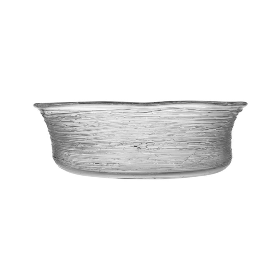 Kokong har et organisk formuttrykk. Rille-effekten lages ved å spinne 30 meter lange glasstråder rundt disse produktene. Hvert enkelt produkt håndlages på Hadeland Glassverk og er helt unikt. Design: Maud Gjeruldsen Bugge.