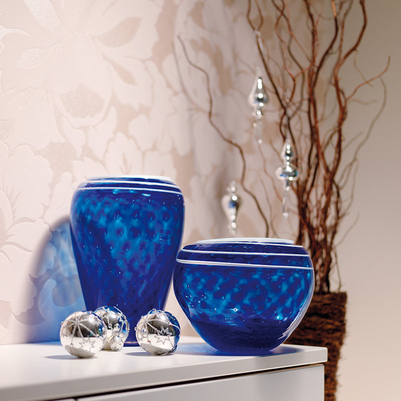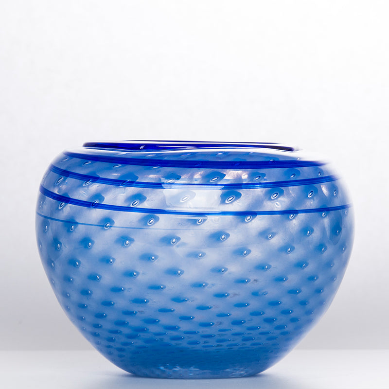 Lobelia er et vakkert og håndlaget produkt med et dråpemønster som skaper en grafisk effekt. Alle produktene i denne serien håndlages på Hadeland Glassverk. Design: Maud Gjeruldsen Bugge.