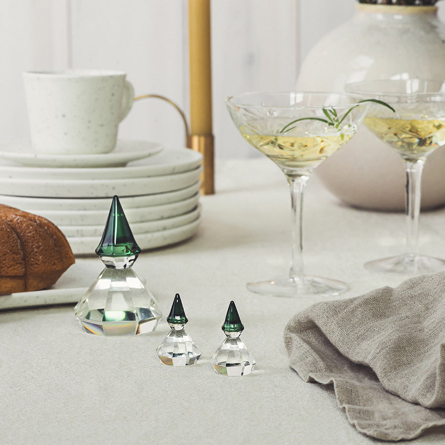 Diamantnisse med grønn lue 9 cm fra Hadeland Glassverk er en glitrende dekorasjon med fasettslipt overflate som reflekterer lyset vakkert. Den grønne luen gir et friskt og moderne uttrykk. En tidløs julefigur og perfekt gaveidé.