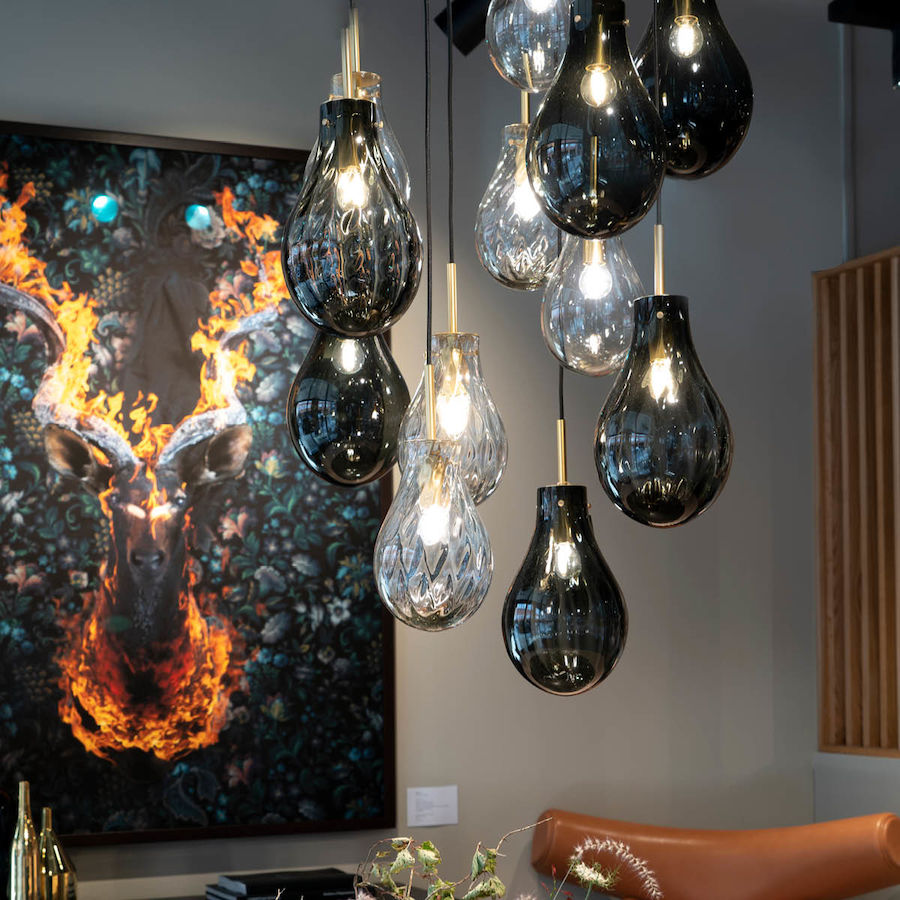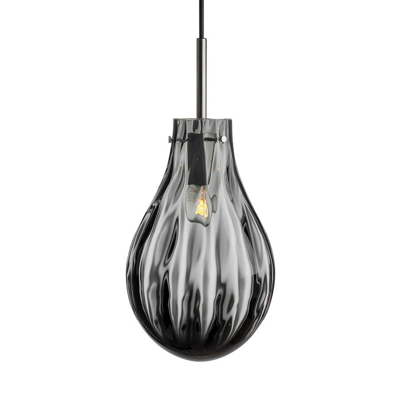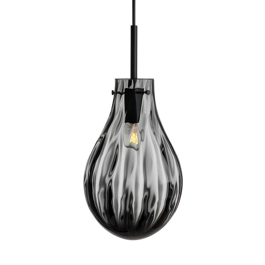 Med inspirasjon fra vannet og vannets bevegelser, ble denne unike kombinasjonen av mønster og form til. Dråpens to ulike mønster skaper et nydelig lys mot veggen. Lampen er like nydelig alene som i klynge. Dråpe munnblåses og håndslipes på Hadeland Glassverk etter 250 år gamle teknikker. Designet av Lina Rincon