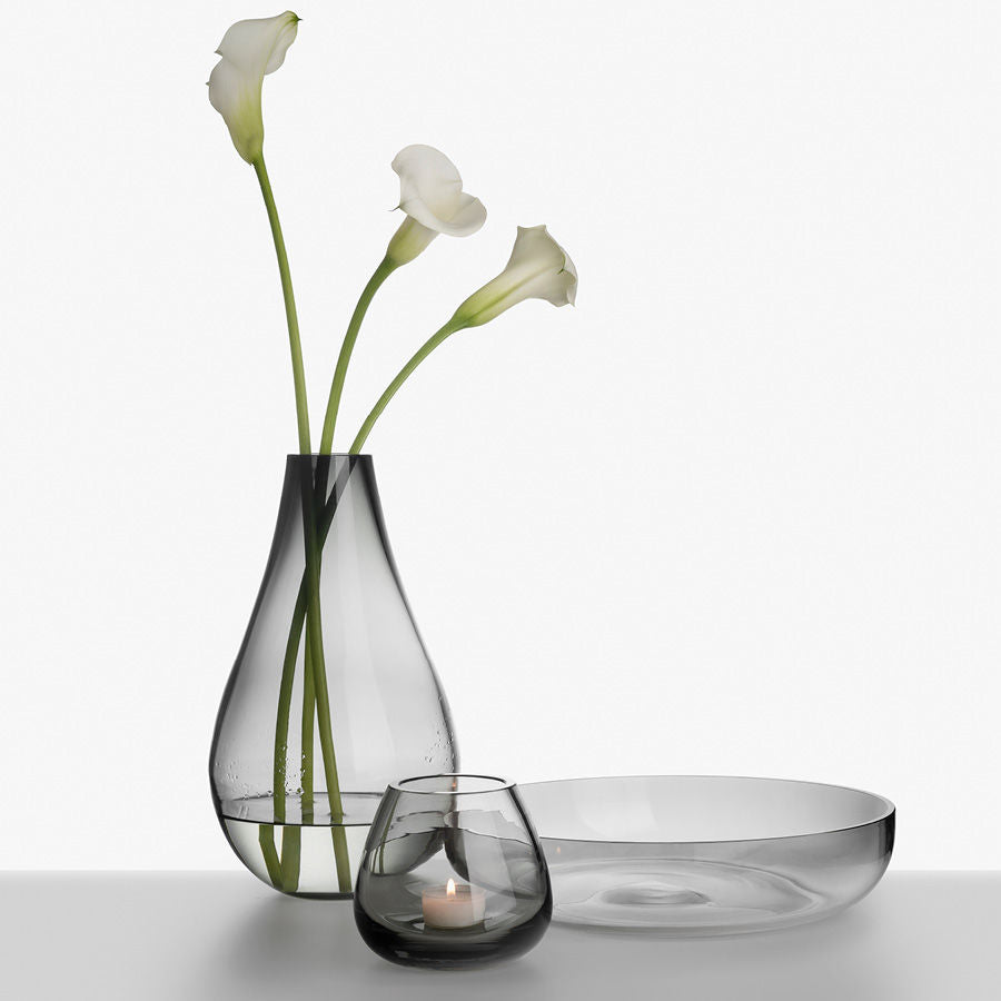 Dråpe er en vakker interiørserie bestående av vase, lyslykt og fat. Med inspirasjon fra vannet og vannets bevegelser, ble Dråpe-seriens unike kombinasjon av mønster og form til. Alle produktene i serien er munnblåst og håndslipt på Hadeland Glassverk.
