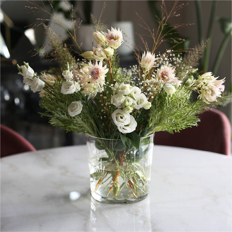 Formål: Denne vasen er ideell for å holde en bukett blomster, enten det er ferske blomster fra hagen eller et vakkert blomsterarrangement fra en blomsterbutikk. Men den kan også stå alene som et dekorativt element i ditt hjem.